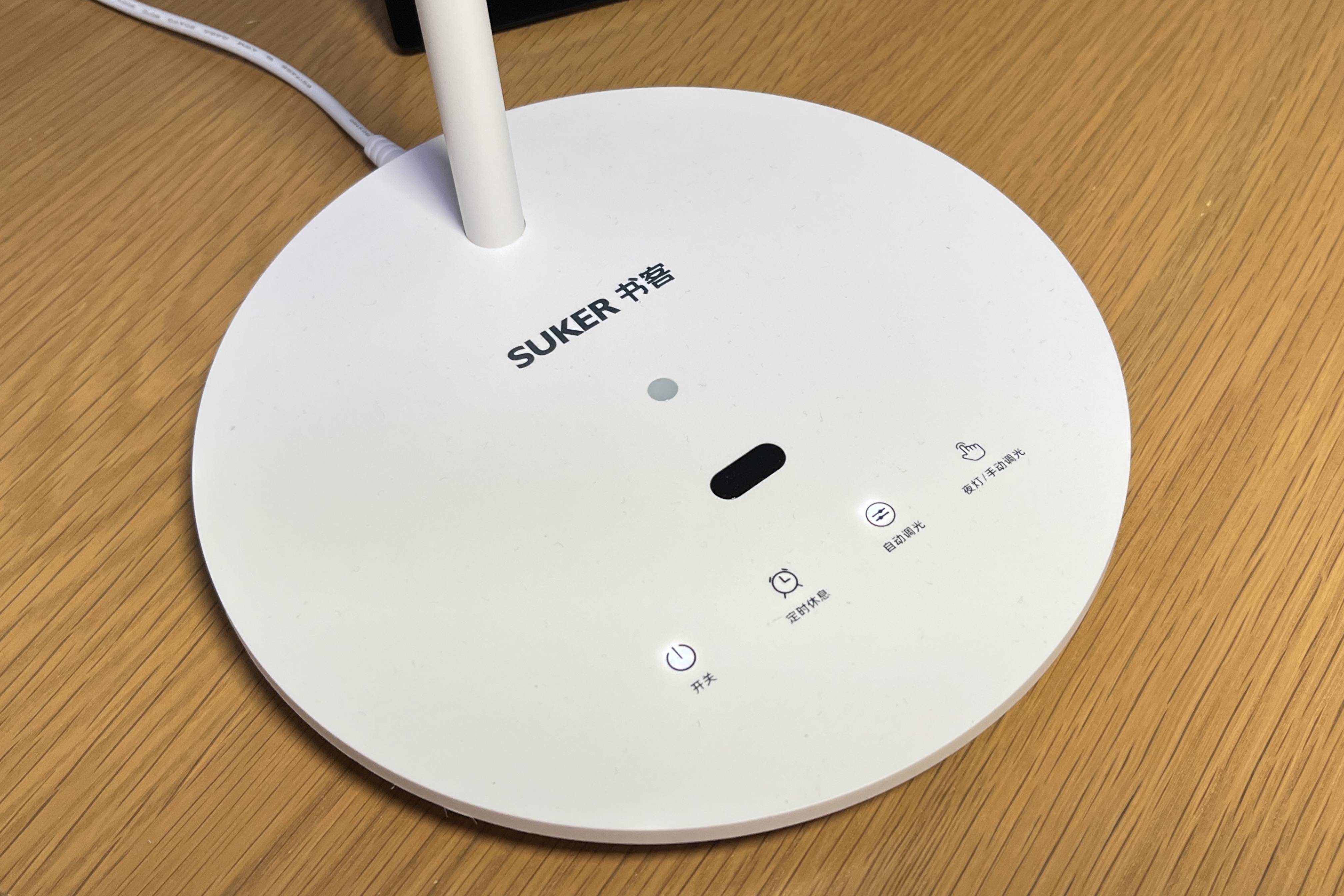 ▲书客台灯L1的按键采用触摸形式,功能标注由可视性高的图案和中文构成,即使是老人和小孩也能轻松使用,面板自带手势感应开关和光感器,方便手势开关和自动调光。