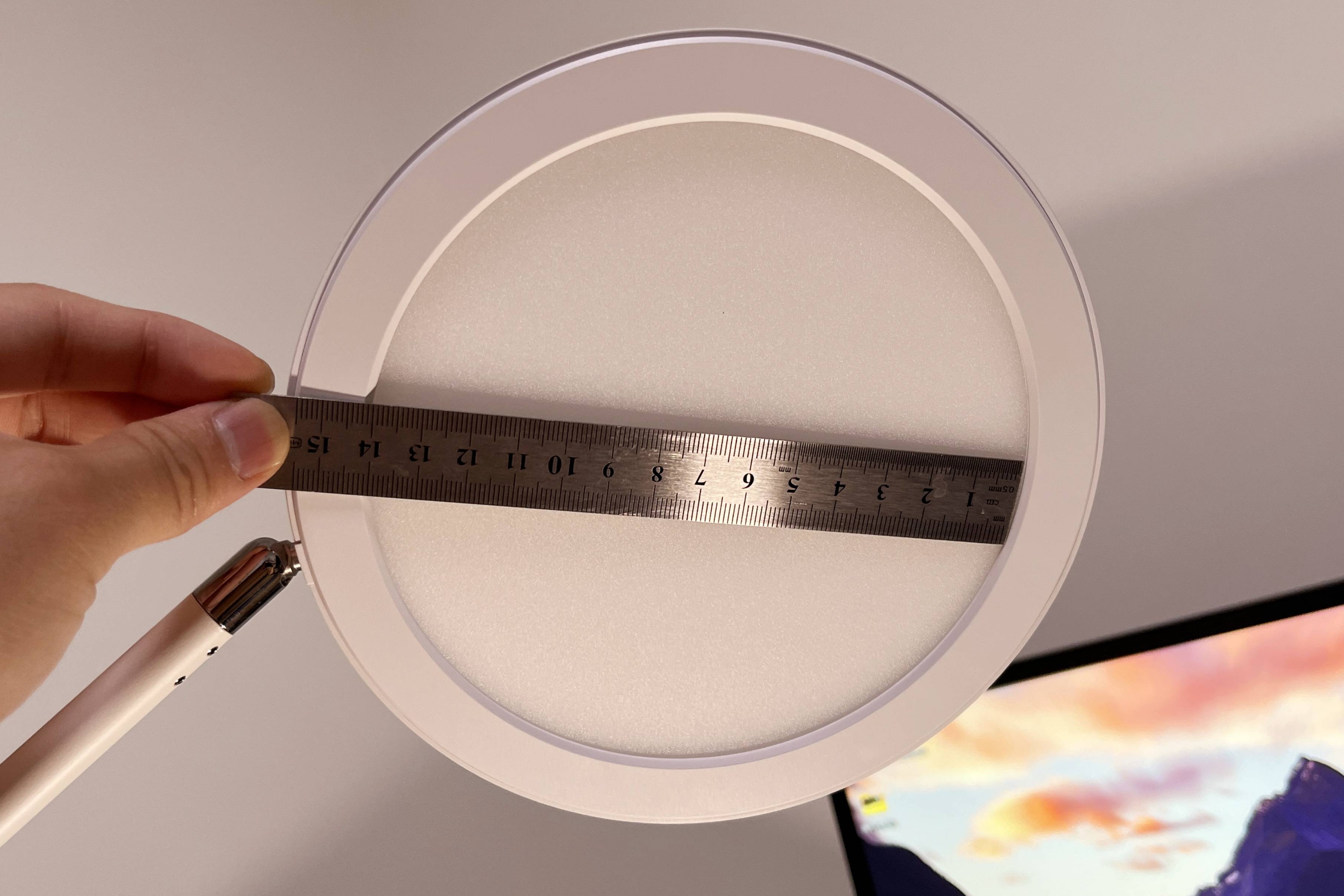 ▲LED灯板的发光直径超过了14cm,照射面积更是达到了182平方厘米,可铺满整个桌子,色温为4000K暖色,显色指数高达RA≥98,其中心照度达到了1800勒克斯,R30照度(指距离光斑中心的距离)也达到了945勒克斯,R50照度更是达到了357勒克斯,远超国AA级标准的相同距离的500勒克斯和250勒克斯。