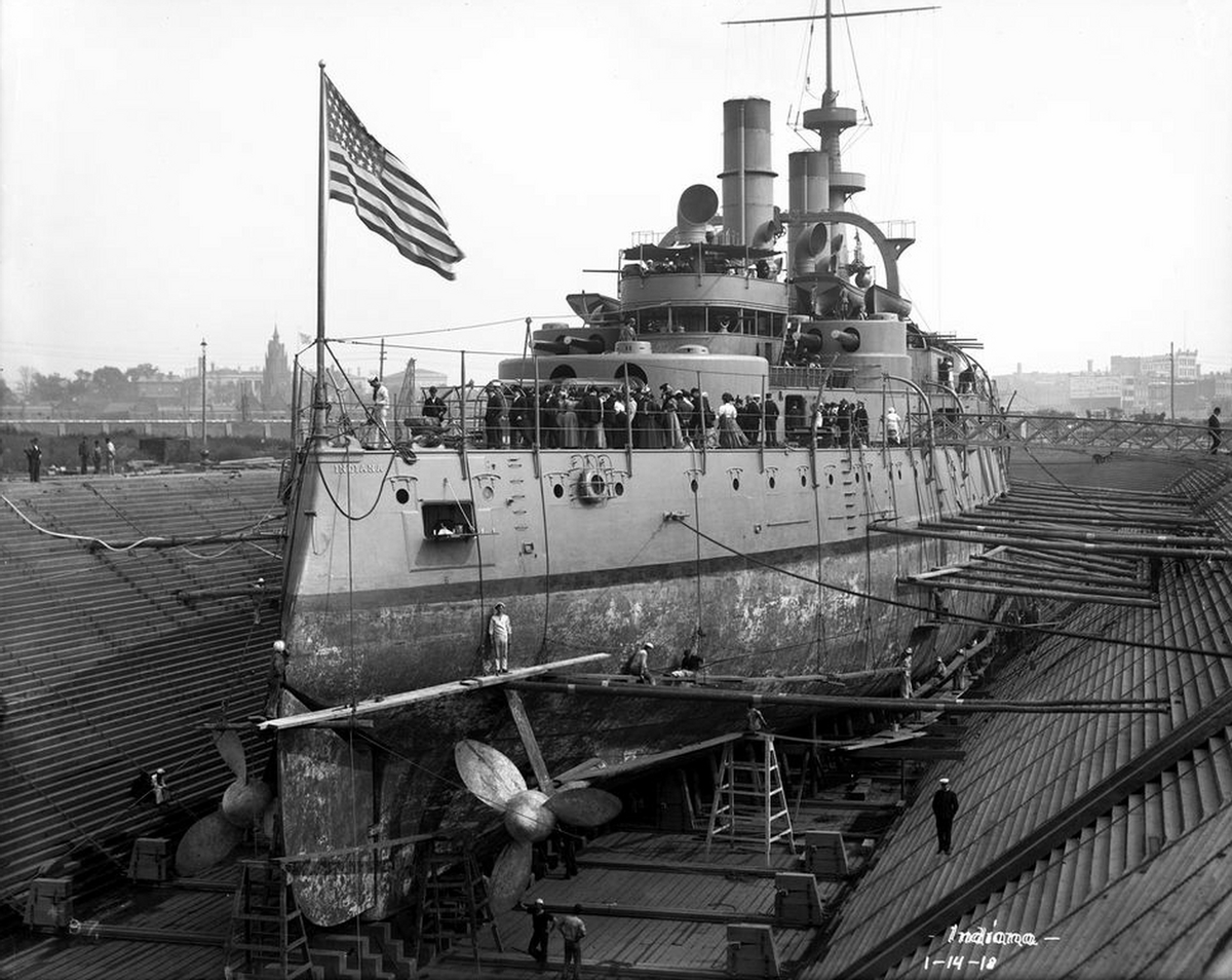 而之所以选择印第安纳号,而非更出名,接受了日本投降的密苏里号也是有说法的。因为印第安那这个名字本身就很有纪念意义——因为美国海军历史上的第一艘战列舰,即BB-1的名字正是印第安纳!