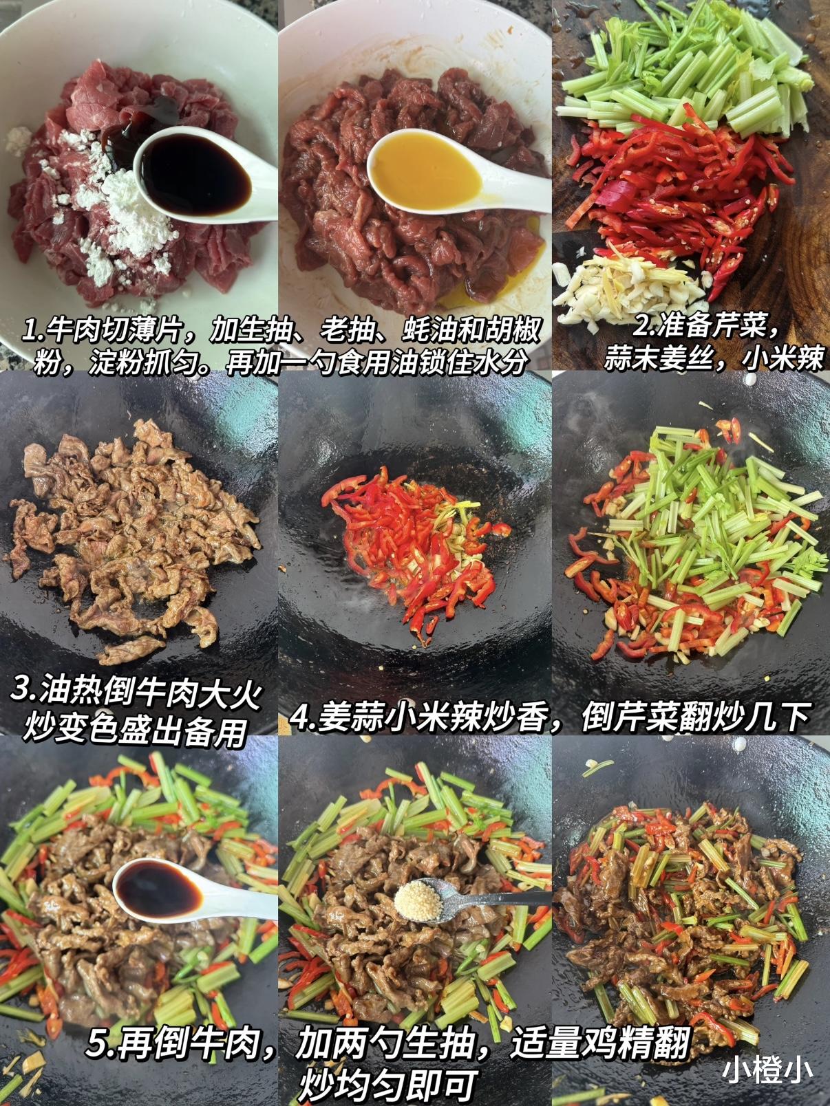 三、两步炒法:牛肉、芹菜各炒各,拒绝“互相拖累”