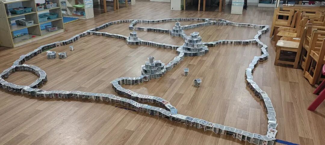 当扑克牌不再是游戏道具,而是变成一座座精巧的城堡、一条条蜿蜒的迷宫 —— 在幼儿园里,一场关于 “纸牌建筑” 的探索之旅正热闹上演!孩子们化身 “小小建筑师”,用创意与科学思维,在扑克牌的方寸之间,搭建出属于他们的趣味王国。