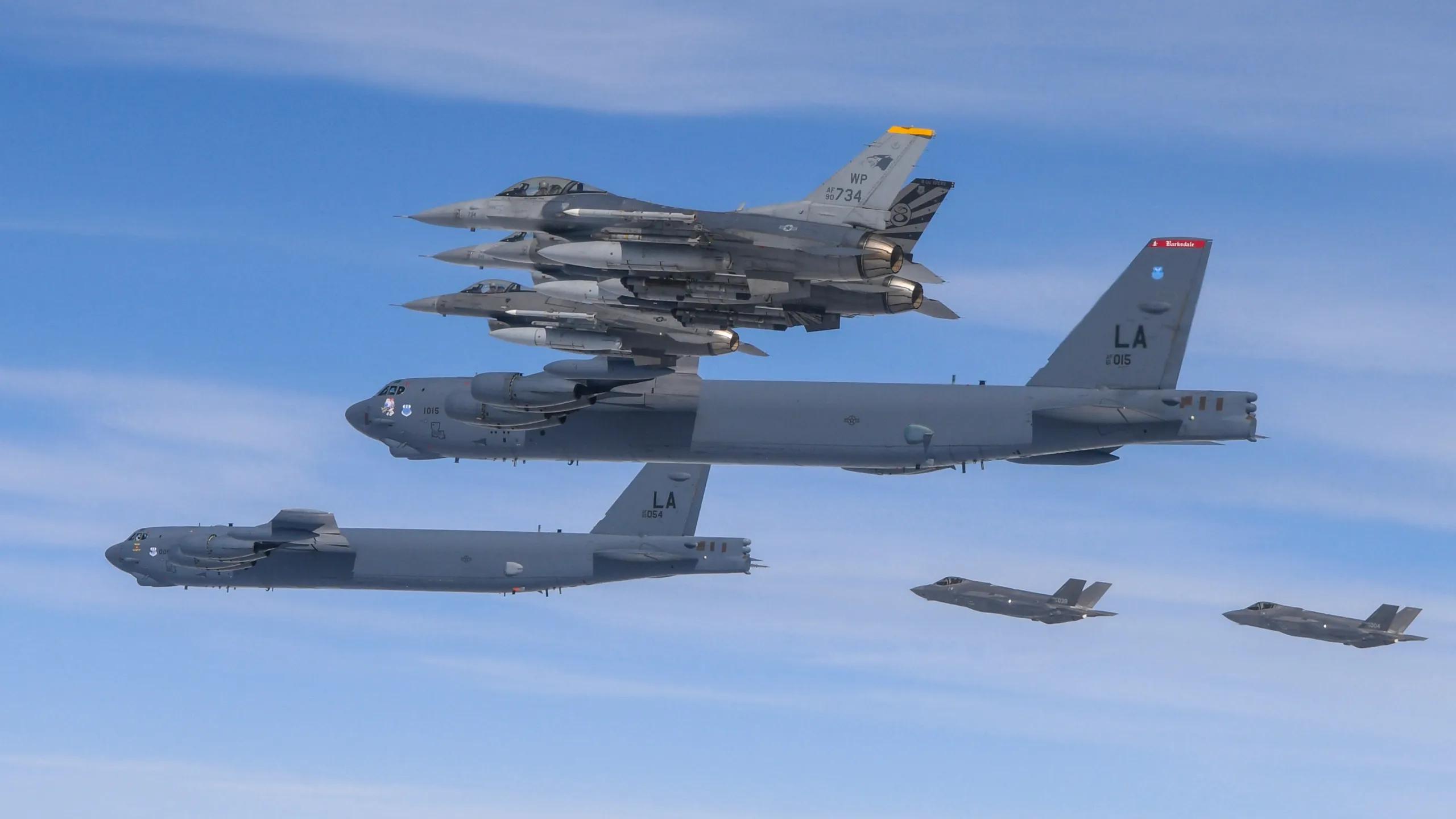 跟它们一起来的,还有从关岛飞来的B-52战略轰炸机。美军把这么大的阵仗选在春节假期,显然是想摸摸中国军队在节假日的反应底牌。