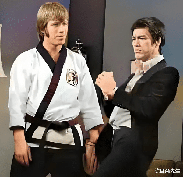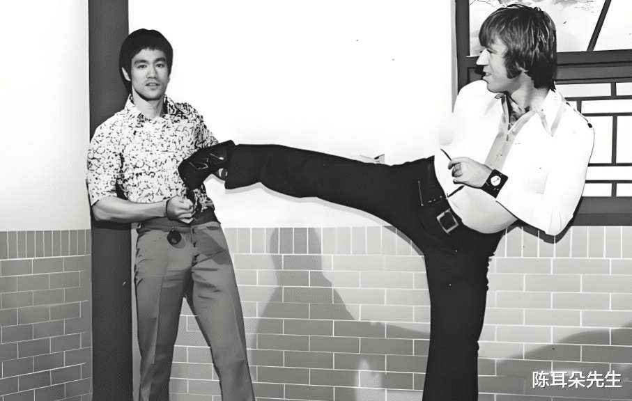 查克·诺里斯是当时全美空手道排在前三的高手,李小龙当时在洛杉矶开设武馆的时候,查克·诺里斯就曾经跟着李小龙学习,可以说是李小龙众多学生中的顶级高手了。