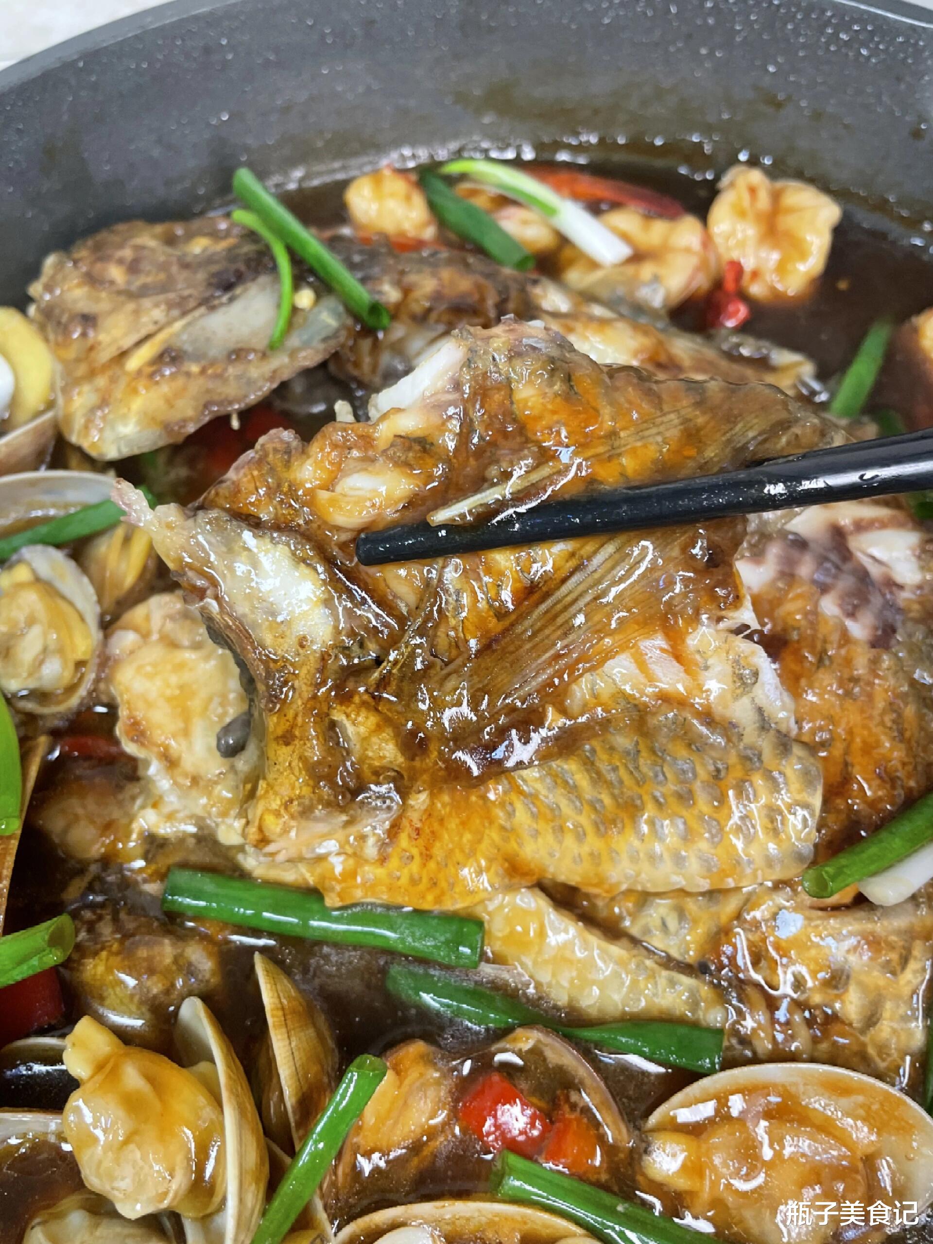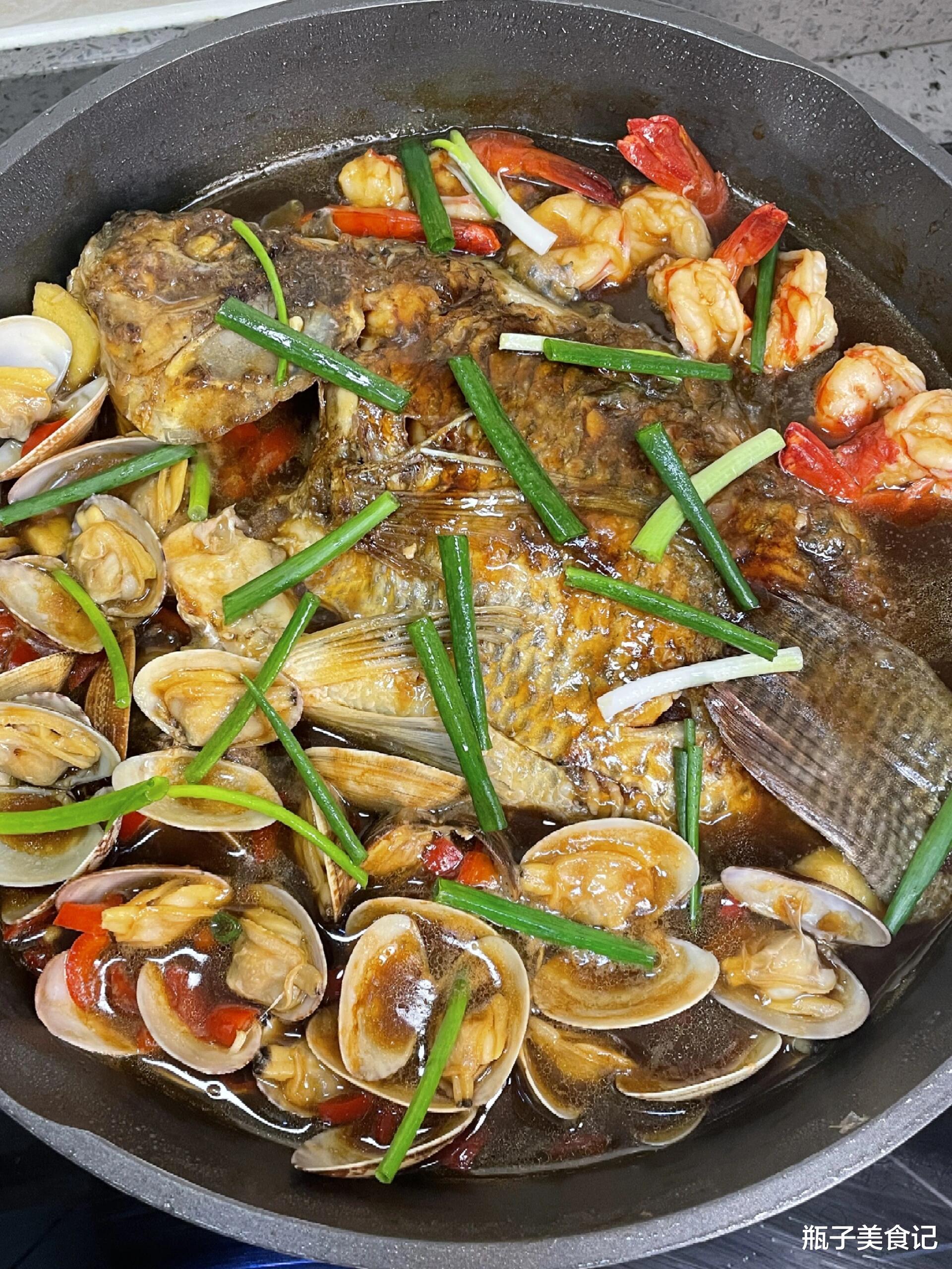 这道集鲜之大成的【罗非鱼鲜虾炖花甲】来啦!它是一锅端的海鲜盛宴,是海陆鲜味的交响乐,让你在家就能轻松享受海边人家的豪迈与鲜美。