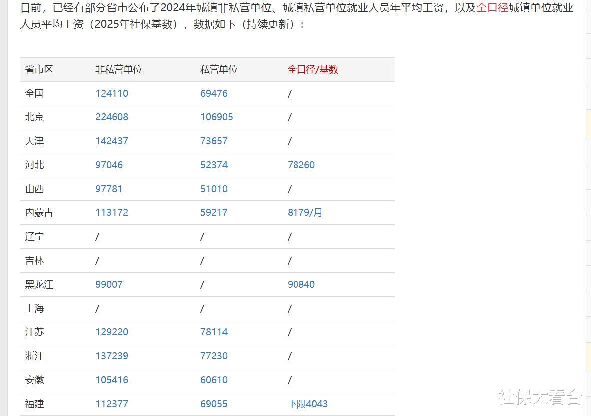 根据不完全统计,今年所有省份都已经公布了城镇私营和非私营单位的社会平均工资,但大多数都没有公布二者的加权平均工资,所以大多数地区的社保缴费基数还没有确定,内蒙古、福建、黑龙江、河北公布了加权平均工资。
