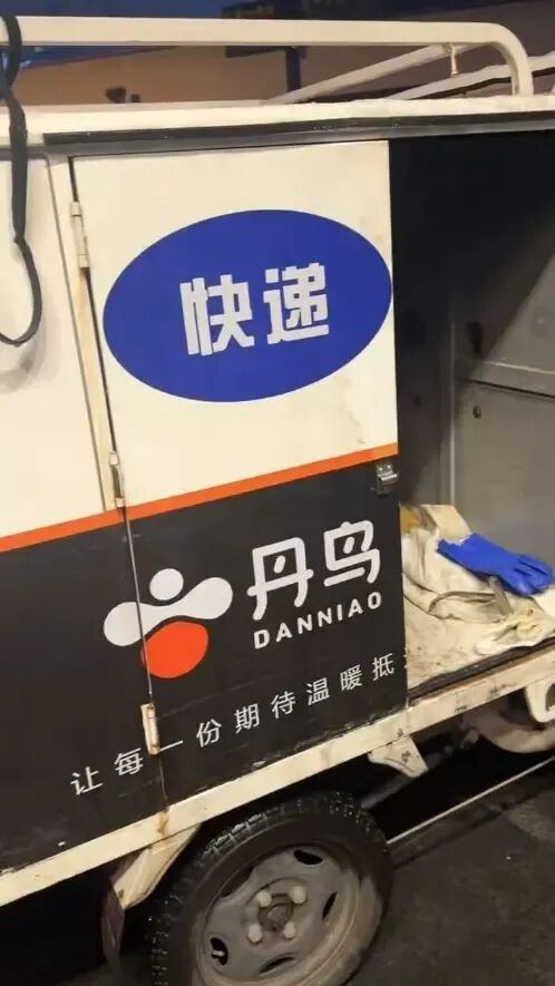 视频拍摄于3月9日凌晨2点19分,画面里的男子身着黑衣、头戴帽子,全程低头不语,舀油的动作娴熟又利落,一看就不是第一次作案。他身旁停着一辆快递三轮车,车门敞开,车身上“丹鸟快递”的字样格外醒目,疑似就是他转运地沟油的“掩护工具”。
