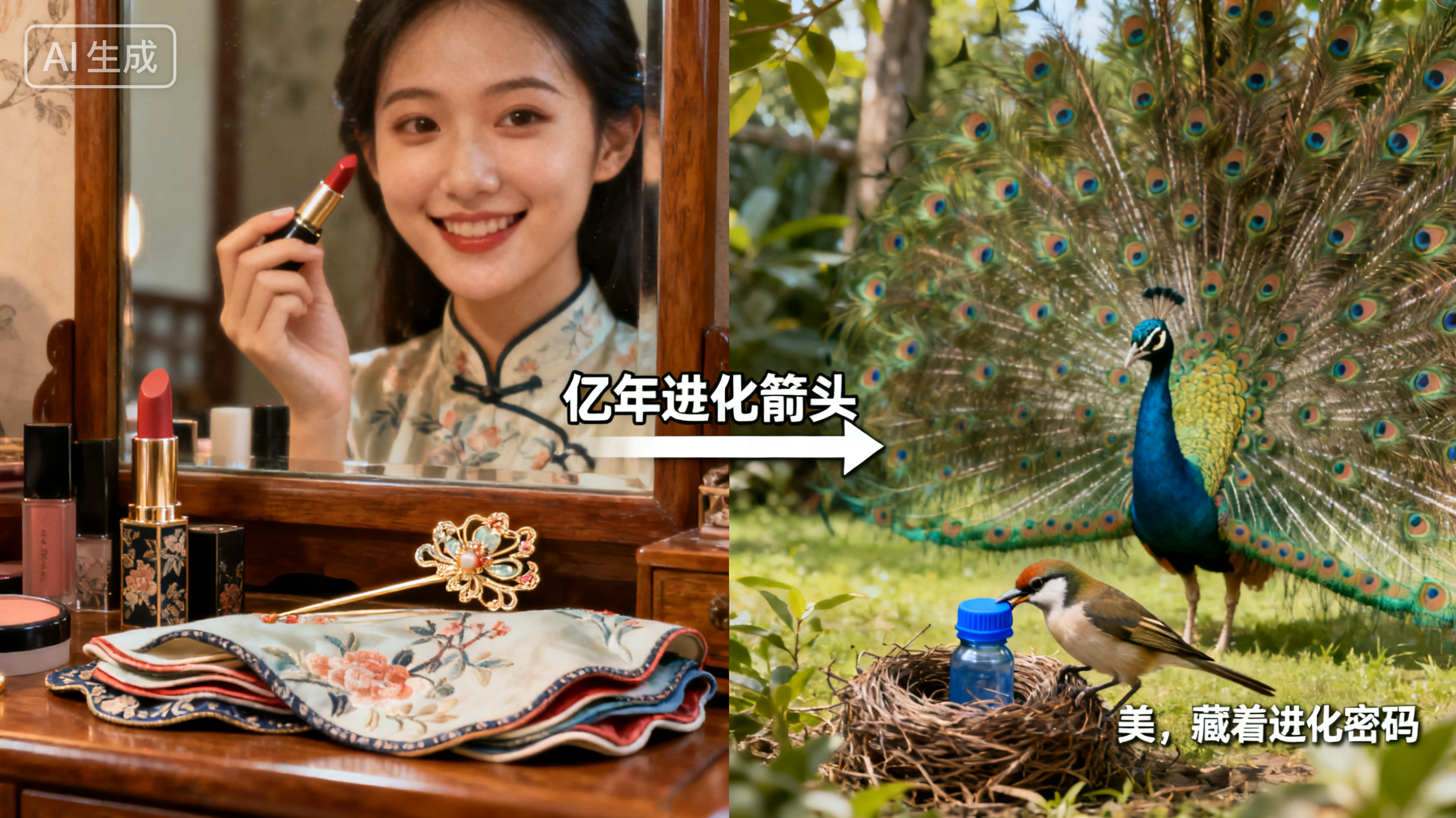 从雄孔雀的尾屏到中国女生的汉服裙,从园丁鸟的蓝色瓶盖到相亲角的房产证,从古代的凤冠霞帔到现代的医美浪潮,美从来都不是 “肤浅的东西”,而是驱动生物进化、文明进步的核心力量。