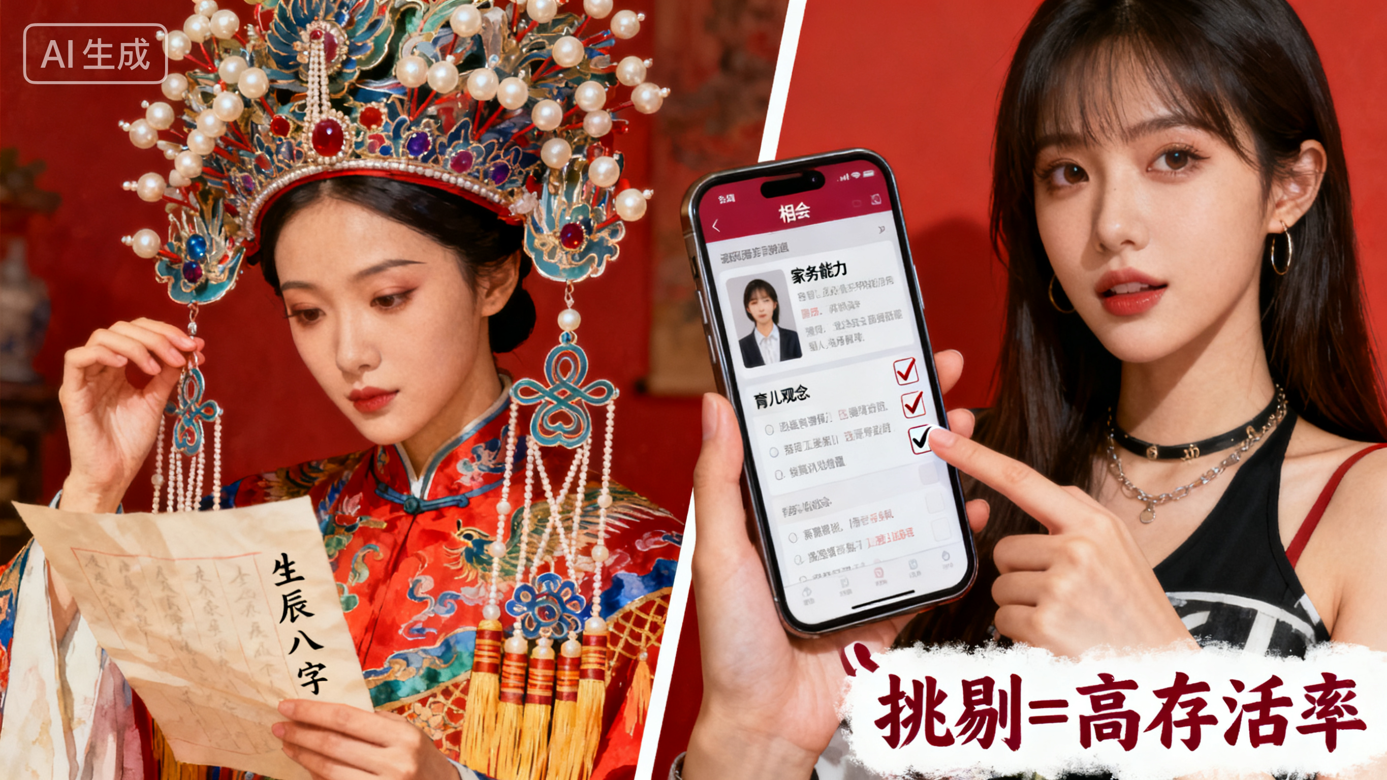 这就是两性关系的核心张力:女生想 “选最优解”,男生想 “多撒网”,这场博弈从人类诞生之初就开始了,至今仍在相亲角、婚恋软件上天天上演!