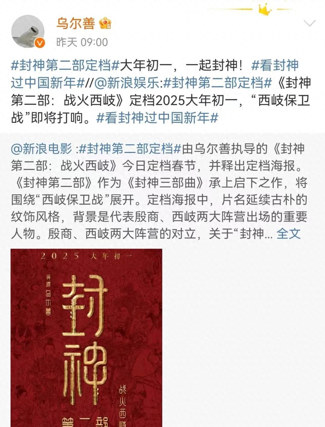 从西岐的烽火狼烟,到封神榜的最终揭晓,这段充满传奇色彩的故事,将在2025年大年初一与我们再次相见。届时,让我们一起走进电影院,见证中国神话的魅力,感受中国电影的力量。