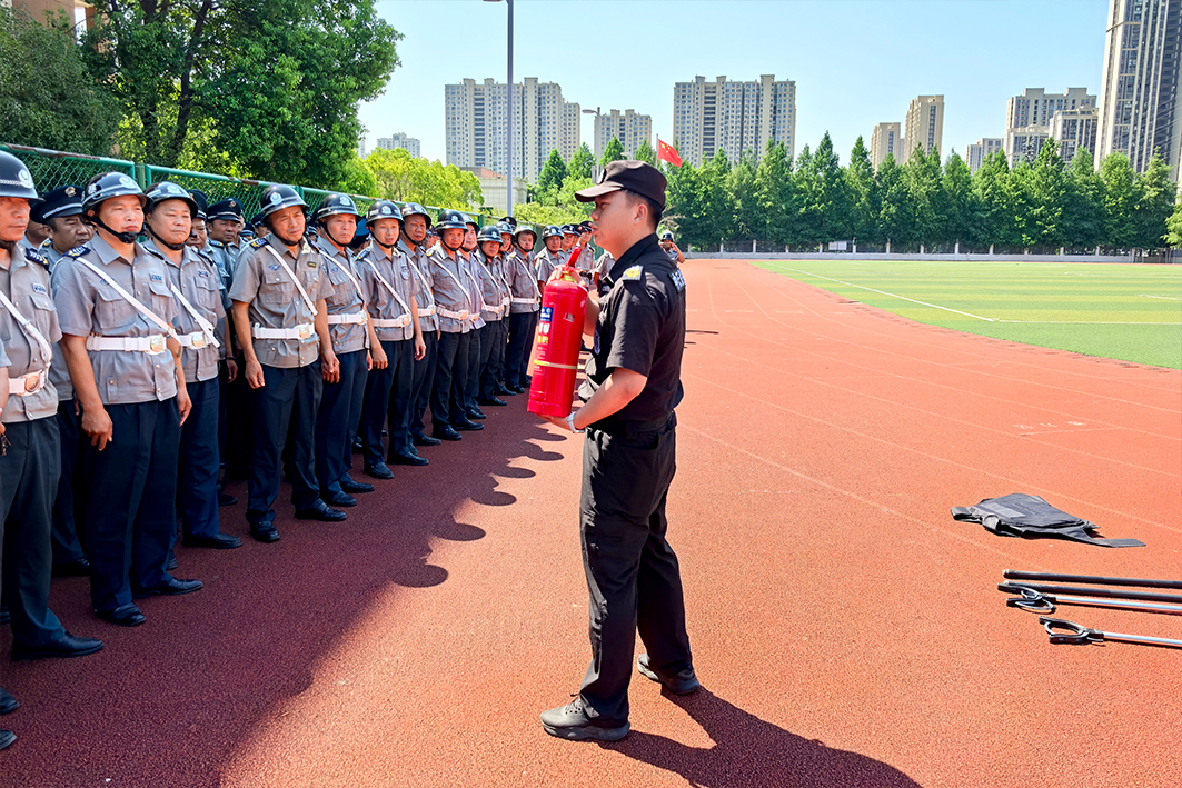 实操培训环节,中天保安集团品质部教官团队围绕最小作战单元及灭火器规范使用展开教学。针对校园可能发生的突发暴力事件,模拟真实场景,强化安保人员实战能力;示范灭火器 "提、拔、握、压" 规范操作流程。随后组织参训人员实操演练,现场纠正不规范动作,确保参训人员熟练掌握灭火技能,各项训练紧扣校园安全实际需求。