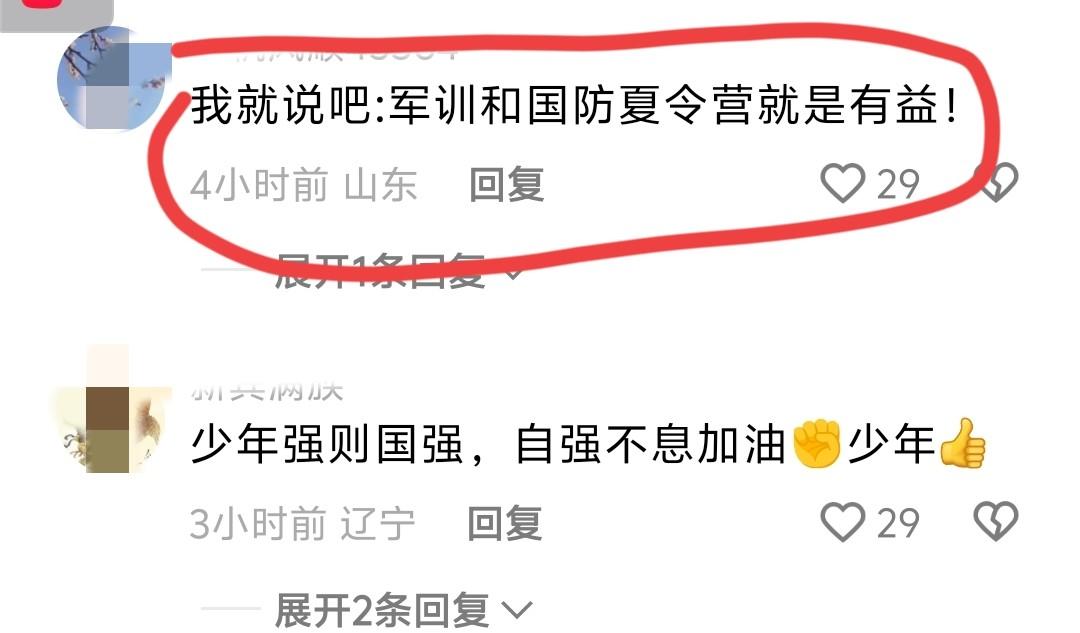 网友在得知孩子参加过国防教育夏令营后,表示了对它的认可。