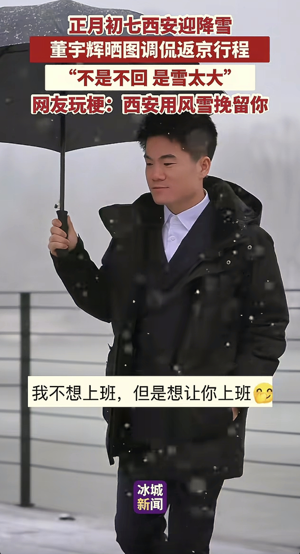 原本大家以为昨天年初八开工首播,宇辉会回到北京带领全体主播一起亮相,但想不到宇辉却因年初七西安突然而来的一场大雪给“留了下来”,虽说大家都知道宇辉这个“西安下大雪没法回北京上班”的理由比较敷衍,但想到宇辉年前忙到那么晚才放假休息,也就理解他想多休几天假的心情。