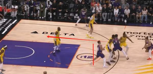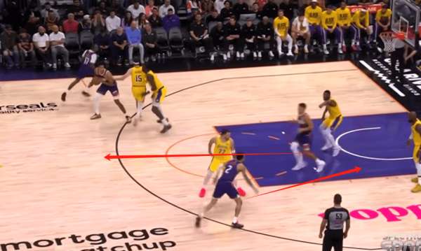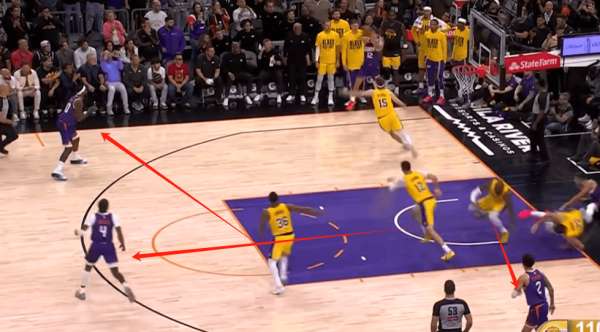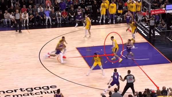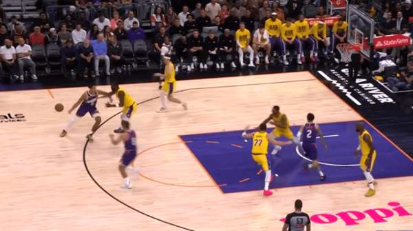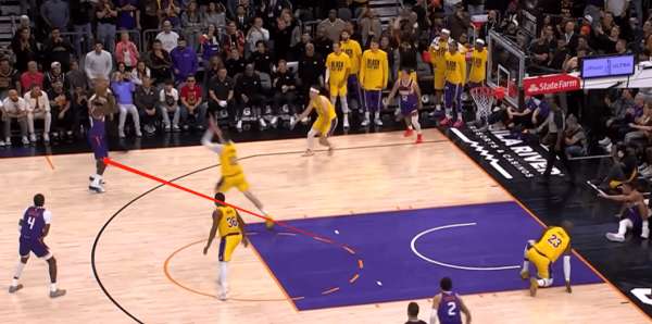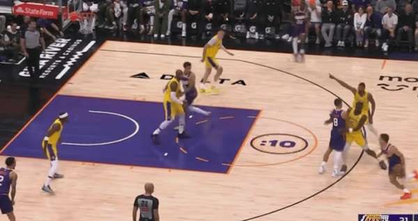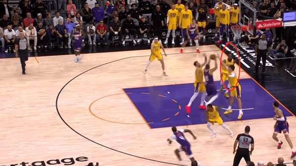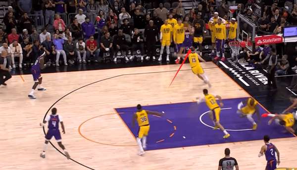 湖人的防守众所周知很差劲,防守效率大概在117左右,联盟排24到26位之间,是联盟倒数,他们经常领先很多然后由于进攻断电被别人打回去并且反超,这让很多球迷十分破防。就来说说最近的一次太阳的比赛,最后一个球的防守让人很不满,看看问题出在哪里。