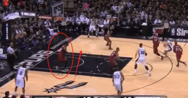这时候太阳打了西班牙挡拆,老詹在内线接下顺的人 艾顿看不到后面的无球掩护
