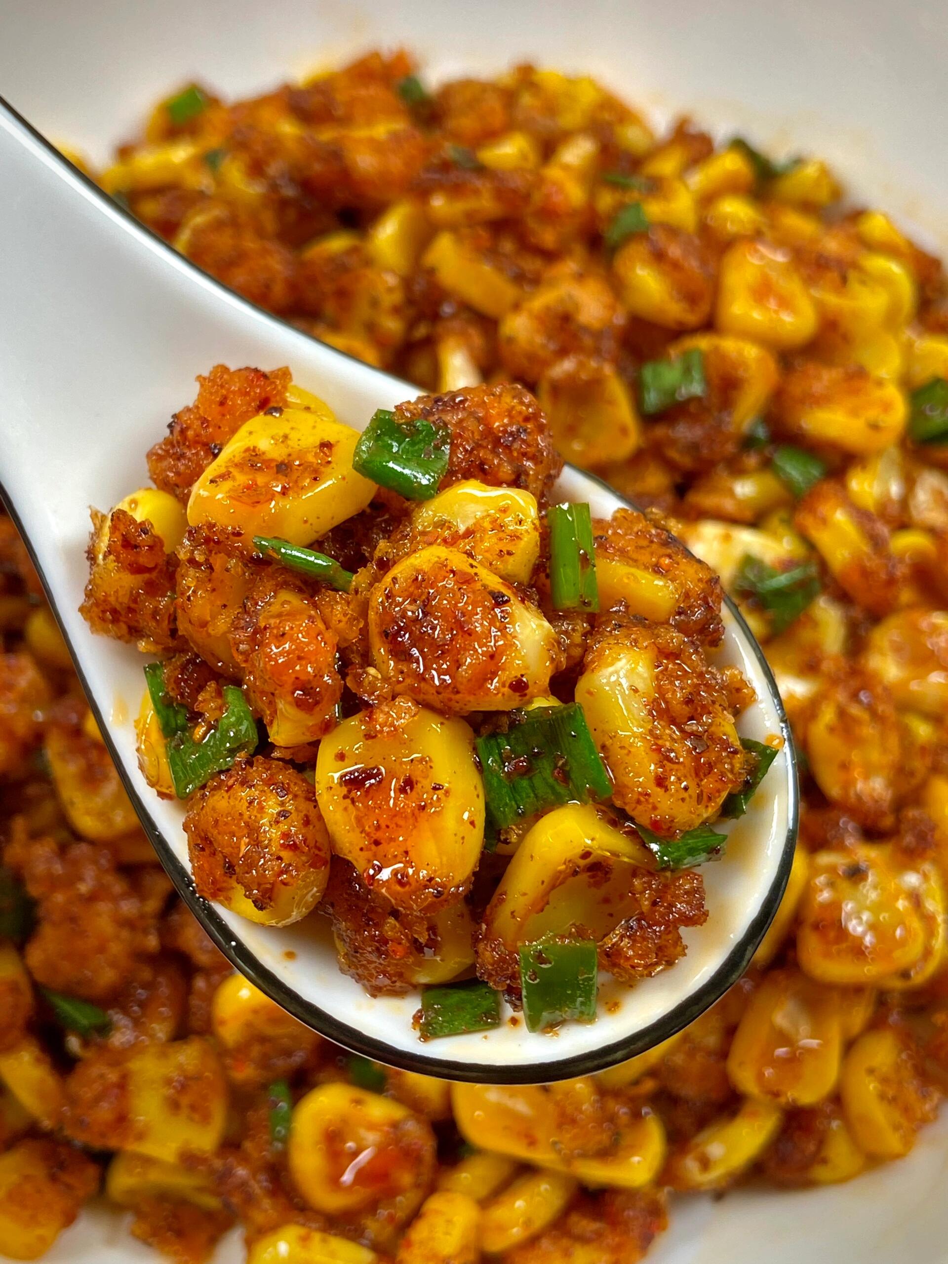 第三,椒盐粉要趁热撒,这样味道才能更好地附着在玉米粒上。