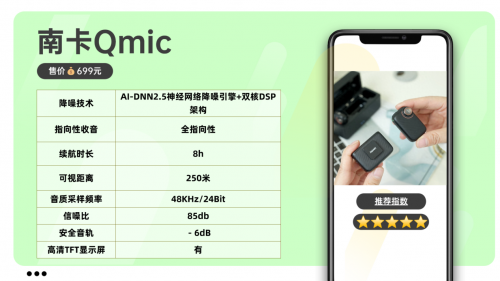 南卡QMic凭借旗舰级收音表现与极致稳定性,在鱼龙混杂的无线麦克风市场中迅速脱颖而出,稳居行业第一梯队。上市以来,QMic长期霸榜多家数码媒体推荐榜单,以“真旗舰体验”赢得创作者一致好评。据了解,南卡从不砸广告、不找明星代言,而是依靠专业讲师、户外博主和视频创作者的口碑相传走红。在各大中高端专业麦克风口碑榜、销量榜中常年霸榜,并获得6家国际专业声学实验室认证,其人声还原效果媲美录音棚级标准,同时更得到上千位主播创作者的一致认可,被誉为“行业性能天花板”,并罕见获得美国与欧盟双重认证以及大使馆指定用品推荐,其实力可见一斑!