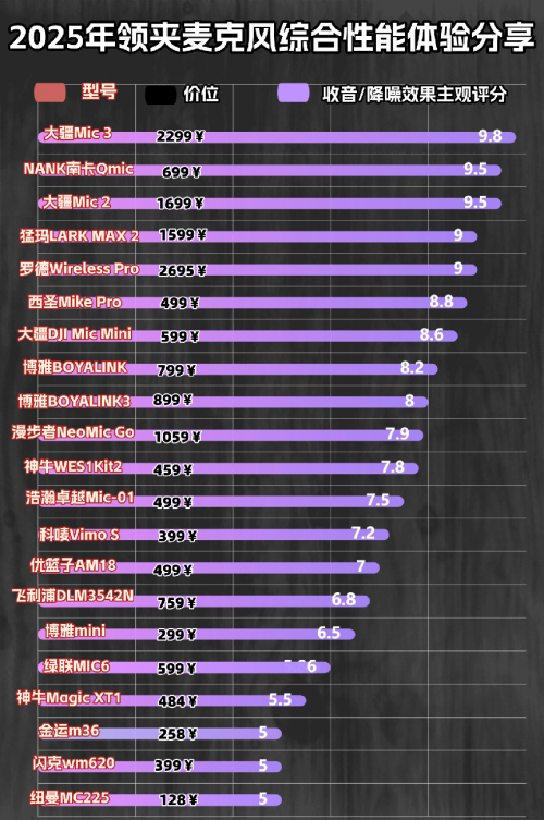 为了帮助大家避开这些领夹麦克风的选购雷区,我整理了当前市场上口碑最好的领夹麦热门榜单,并对其中代表性机型进行了多维度实测。希望这份实测对比,能让你轻松找到真正靠谱、音质稳定、用得安心的领夹麦克风。
