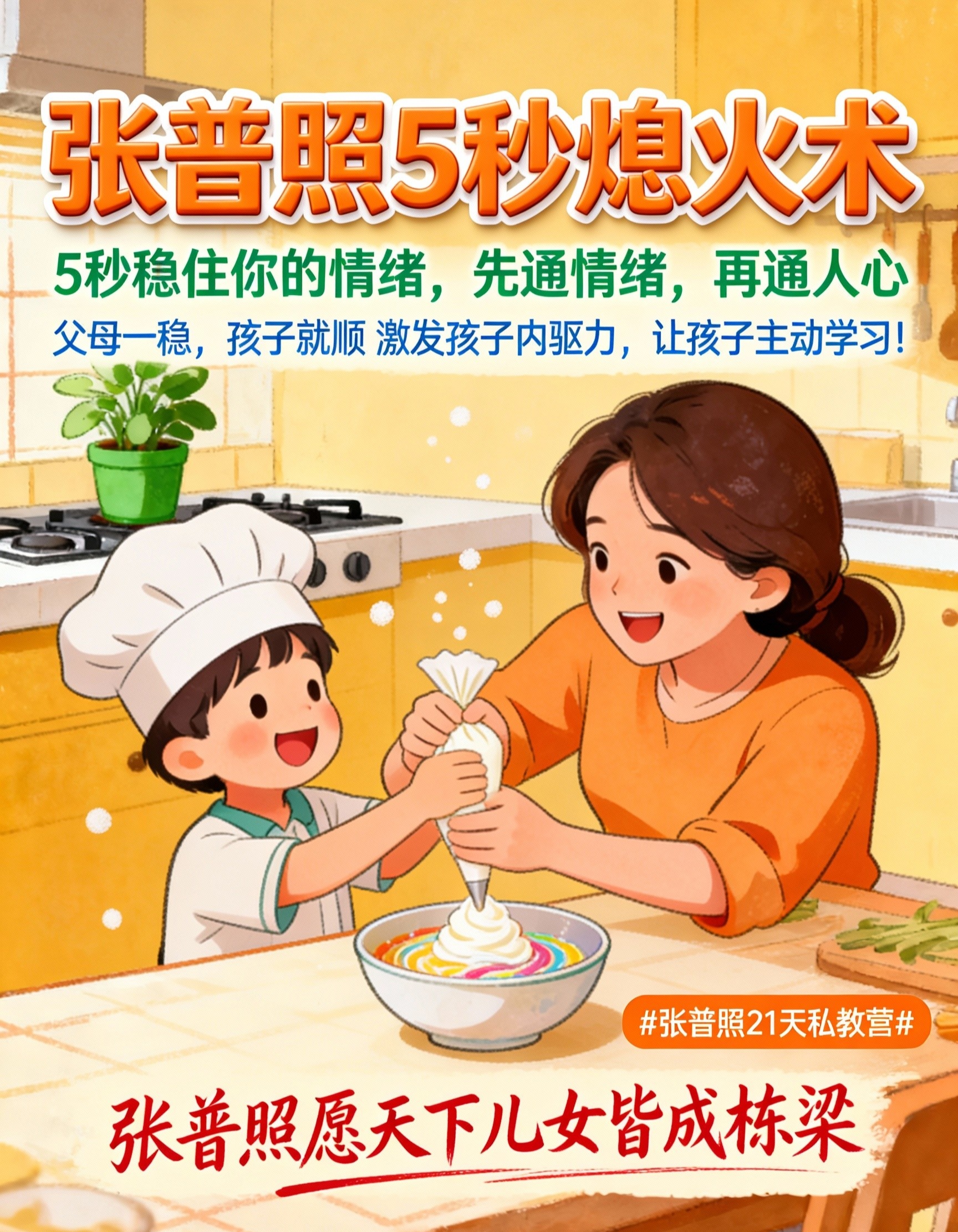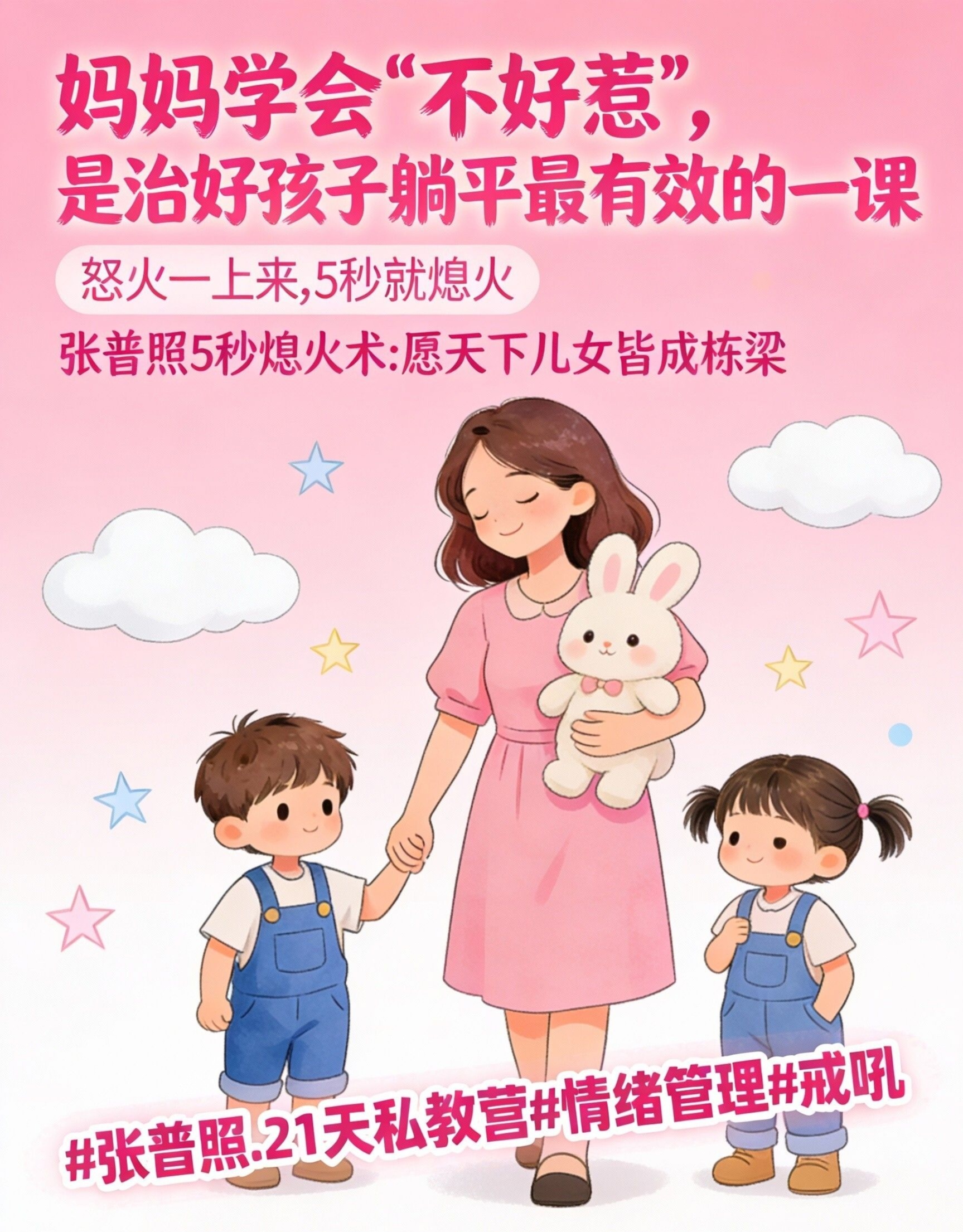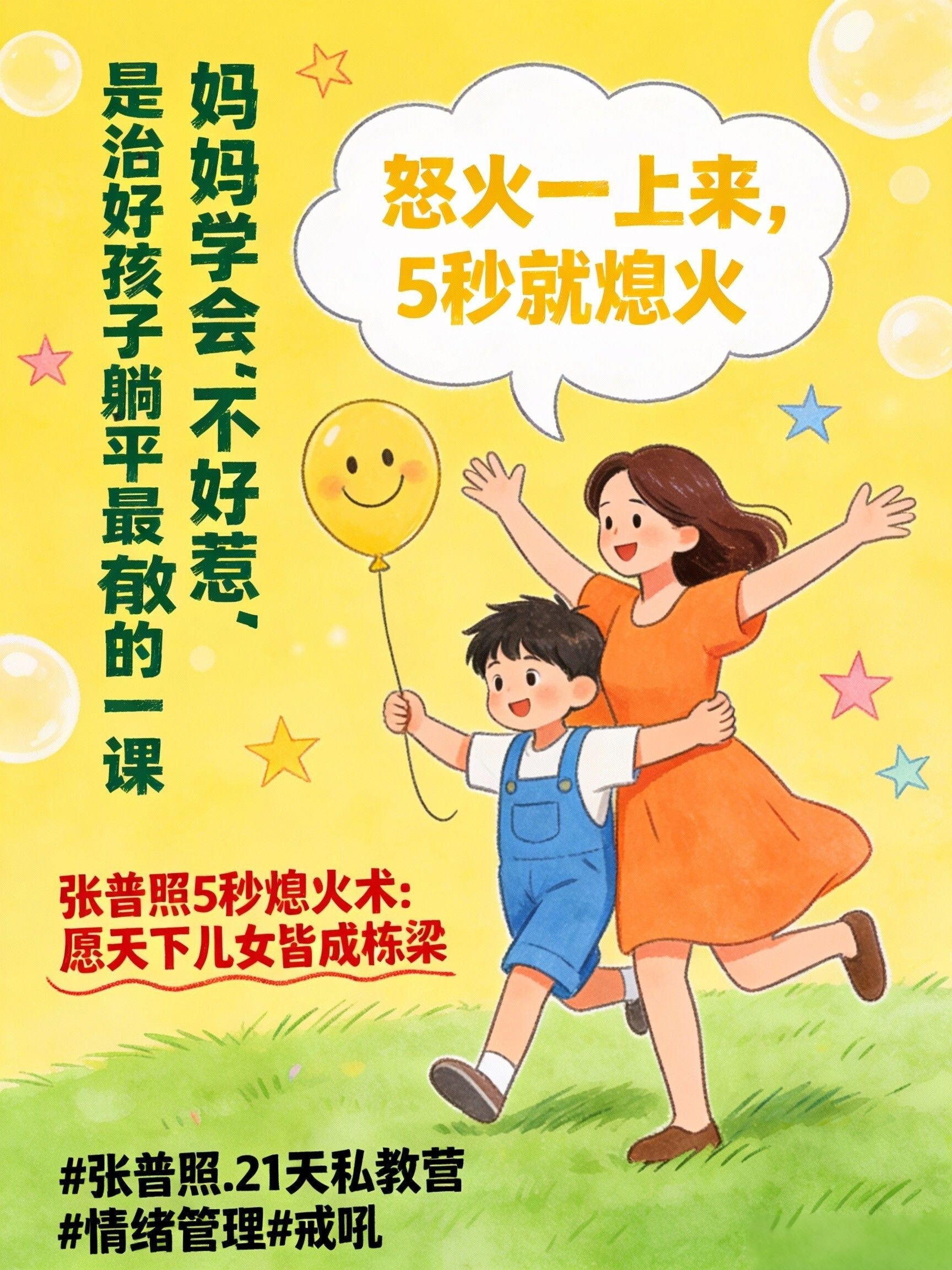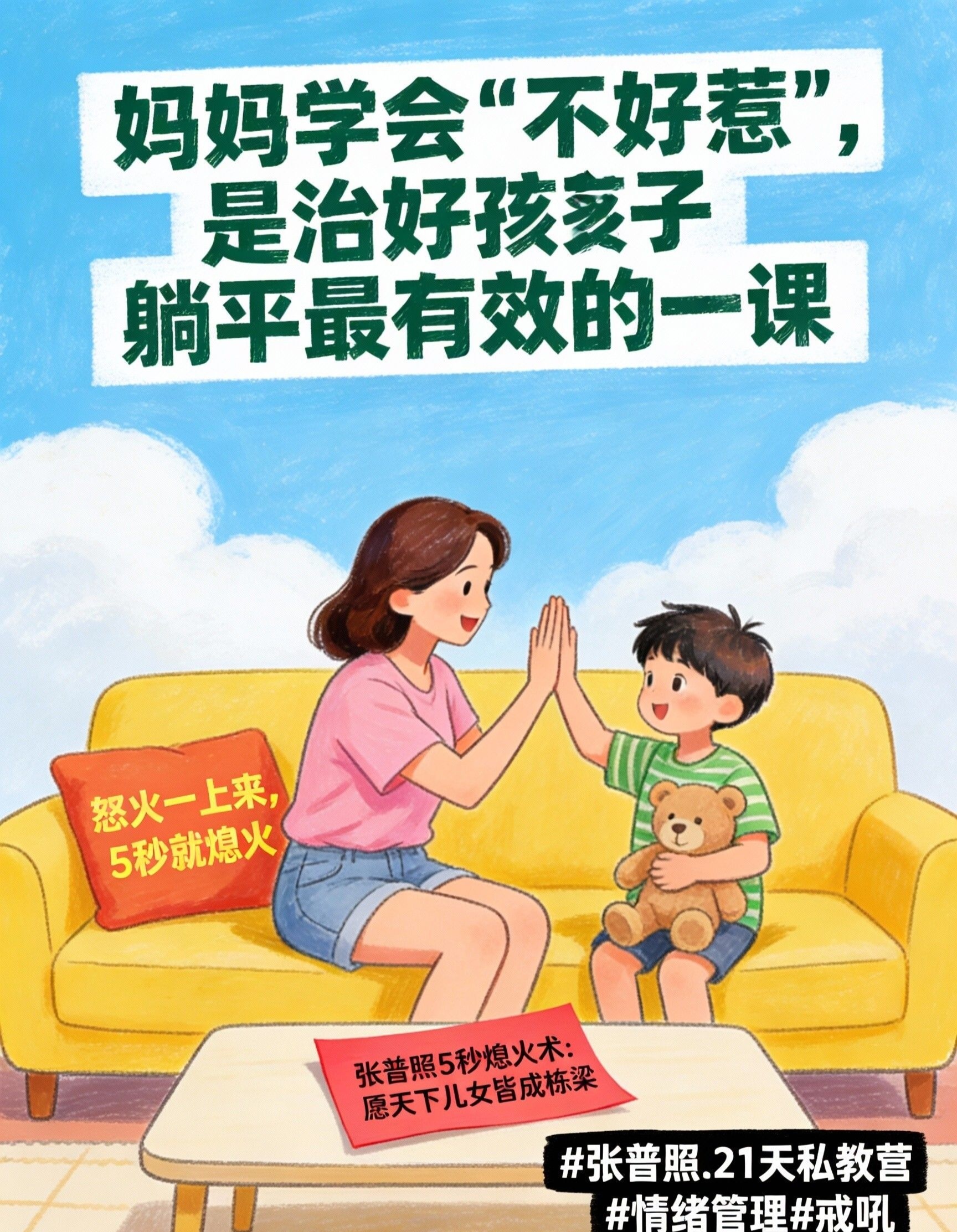 张普照5秒熄火术,就是让你获得这种 “静定生威” 状态的核心心法。在你快要被孩子的消极态度点燃,准备“以暴制躺”的 关键时刻,给你 一次5秒的“能量转换”。