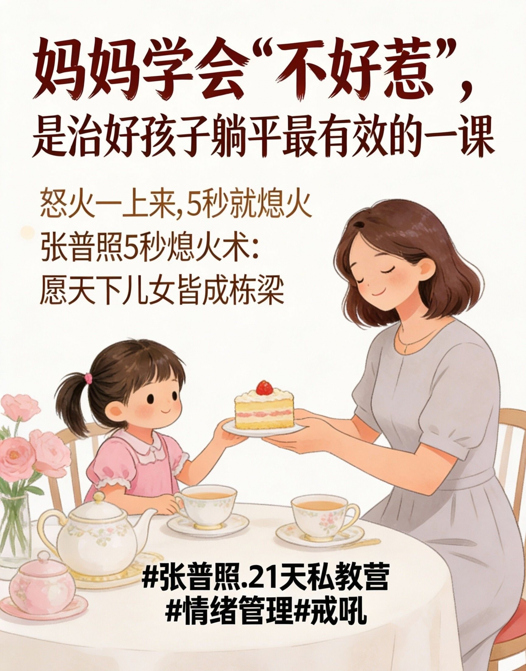 “妈妈真正的‘不好惹’,不是嗓门大、脸色冷,而是情绪稳、内心定。你的平静,是对孩子消极抵抗最有力的反击。”——张普照