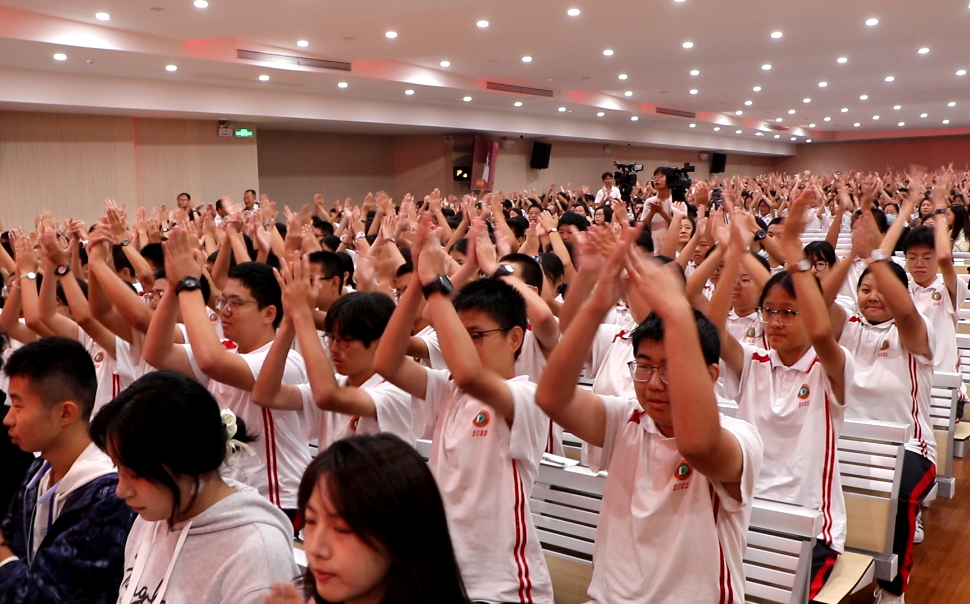 升旗仪式后,陈果老师以“何为哲学”这一根本性问题切入,引发了现场师生的深刻思考。陈果老师巧妙地将先贤的哲思与当代中国青年的现实困惑相结合,用生动平实的语言,阐述了哲学如何帮助我们认识人生、把握人生以及获得精神上的自由。整场讲座,陈果老师妙语连珠,引经据典却又深入浅出,现场不时爆发出雷鸣般的掌声。