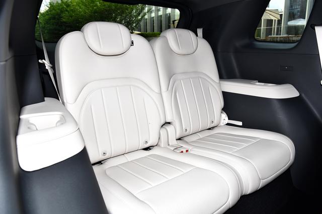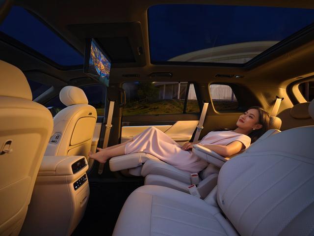六座版本的第二排采用独立座椅设计,舒适性与前排持平,右侧座椅还带有零重力功能,支持十点按摩和座椅记忆,搭配可折叠小桌板,临时处理办公事务、给孩子放零食绘本都十分便捷。中间过道宽度达到180mm,进出第三排无需费力挪动座椅,老人和孩子能轻松上下车。五座版本则更注重空间灵活性,后排座椅支持比例放倒,放倒后可拓展出超大储物空间,日常购物、搬运物品,或是长途出行放置露营装备、婴儿车等大件,都能轻松应对。