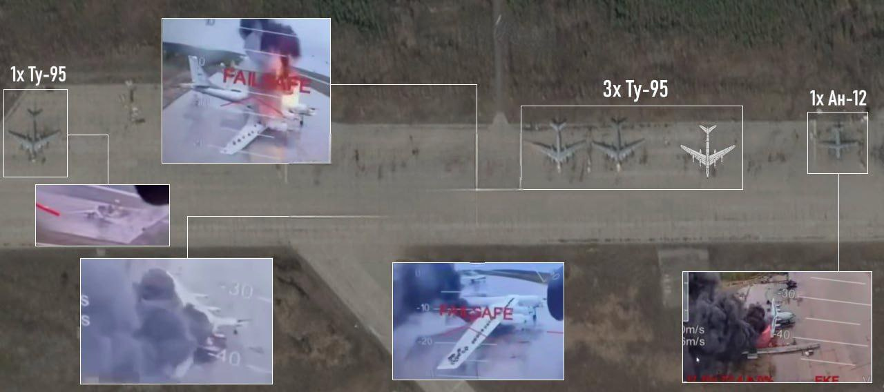 1号袭击结束后,乌方声称以精准手段摧毁了俄军41架战略轰炸机,但其战果严重夸大,实际上有7架图-95战略轰炸机和2架图-22M3轰炸机被彻底摧毁。
