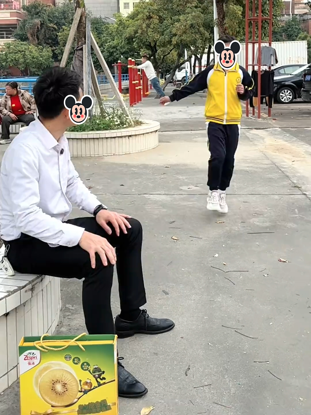 男子尴尬地站在原地,片刻后,他伸出双手,试图想抱抱孩子。可她却像受惊的小鹿一般,迅速挣脱妈妈的手,转身躲到了妈妈的身后。