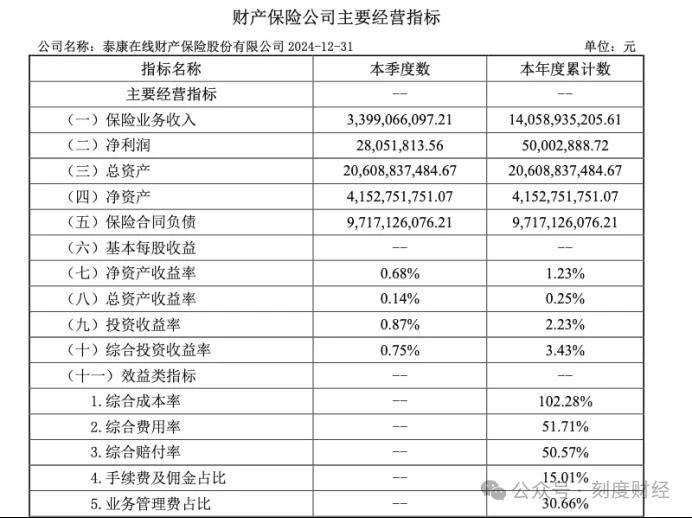 财务表现波动显著,2024年净利润仅5000.29万元,同比下滑超三成,受综合成本率102.28%等因素拖累。