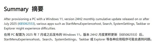 值得一提的是,据微软发布的支持文档 KB5072911 (仅为支持文档而非累积更新),微软承认 Windows 11 24H2 版从安装 2025 年 7 月更新 KB5062553 后就会出现多种症状,也就是只要用户从 2025 年 7 月 8 日更新过系统那就可能遇到这类问题。