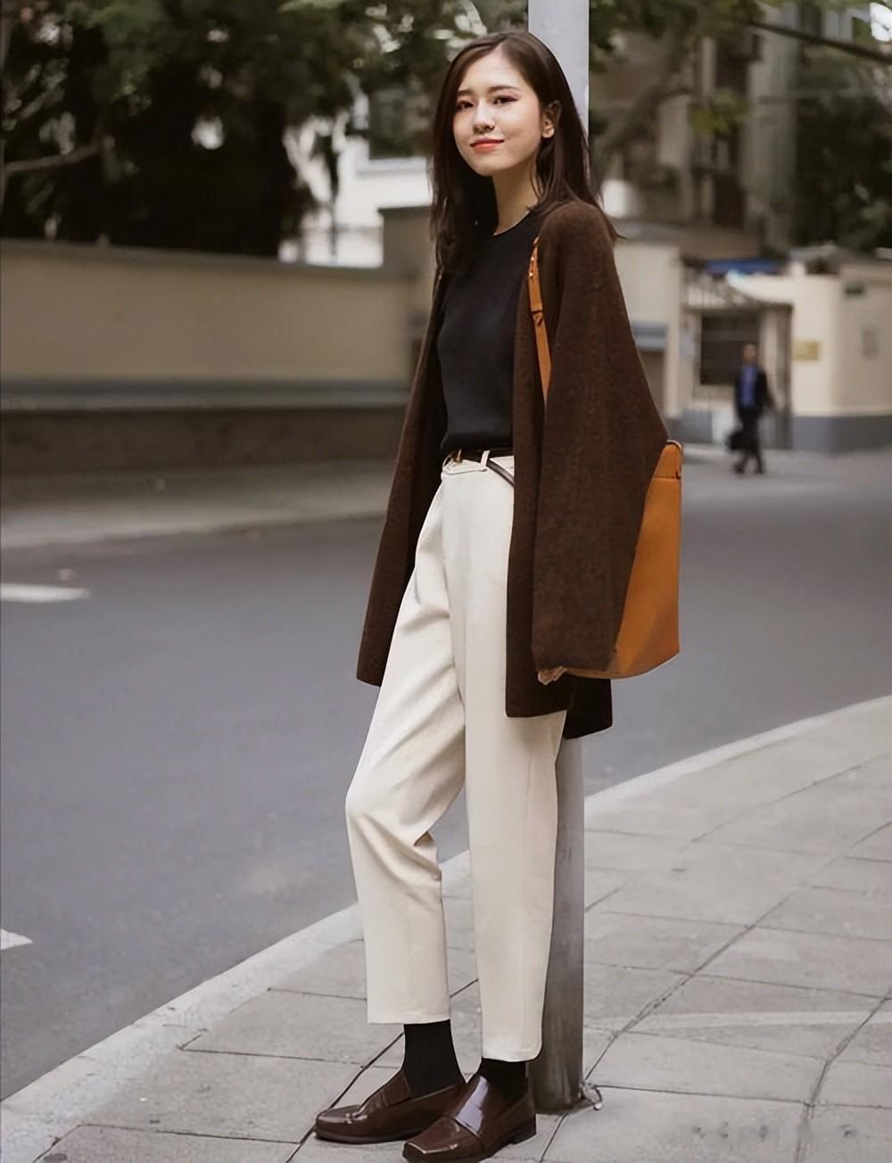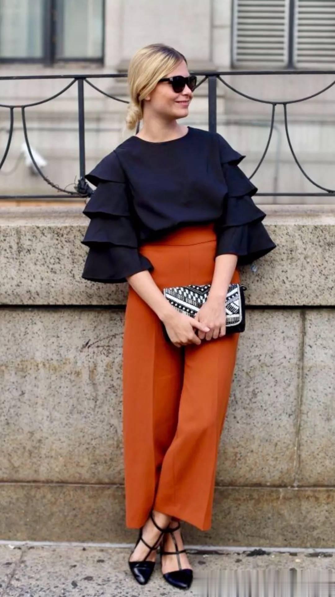 裤长要“恰到好处”。 通勤场合,裤长最好盖住脚面的一半左右,搭配低跟鞋或平底鞋时,裤脚距离地面约1-2厘米为宜。过长会拖地显得邋遢,过短则容易暴露小腿线条的不完美。