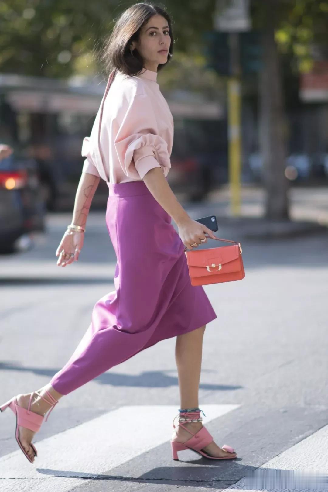 点缀色(10%): 姜黄、宝蓝、玫红等饱和度较高的颜色。建议以小面积形式出现,比如丝巾、包包、鞋子,起到画龙点睛的作用。