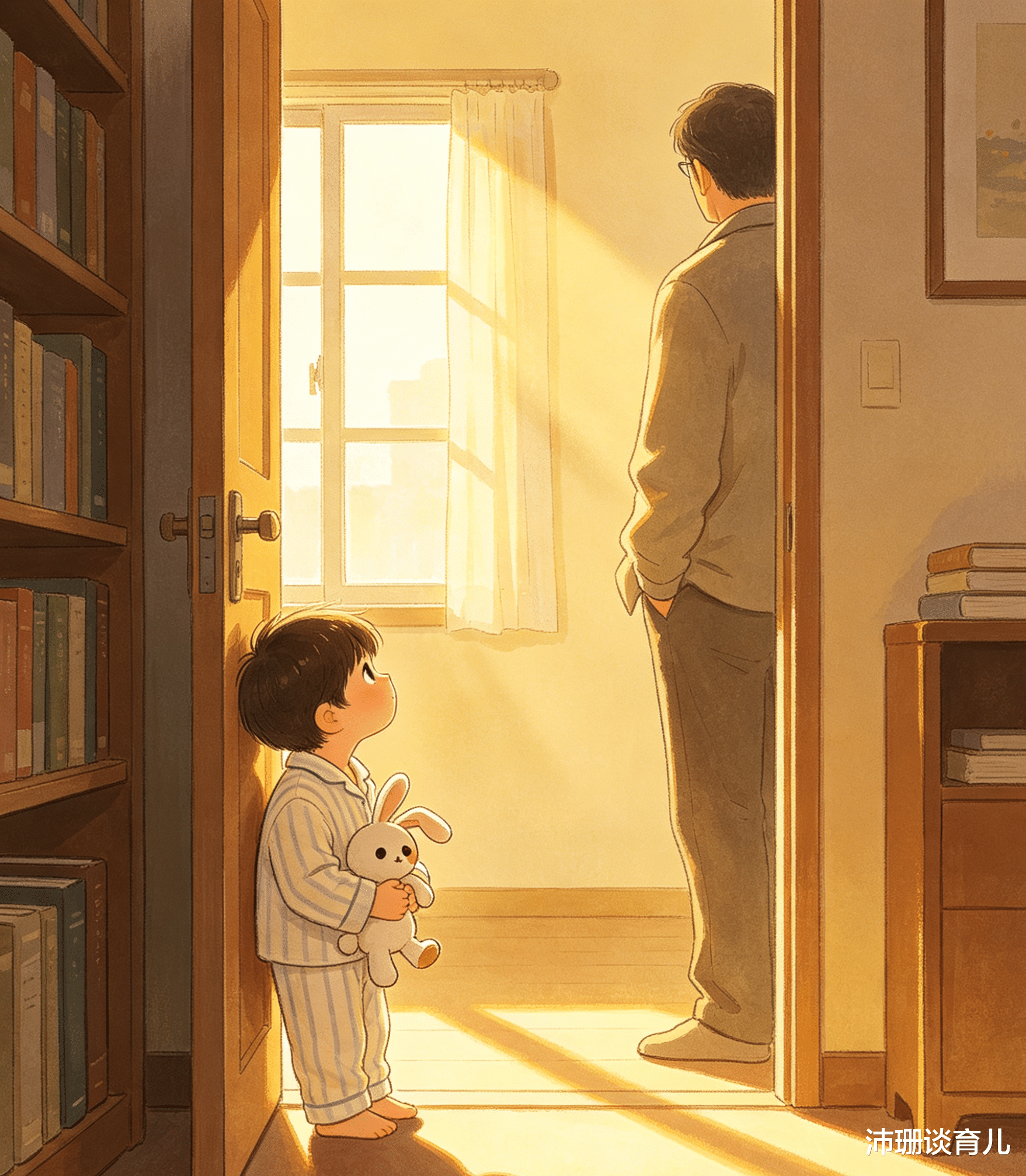 晚上我加班回来,快十一点了,孩子早就睡了。第二天早上他醒得早,跑到房门口,靠着门框,手里还抱着那个掉了一只眼睛的兔子玩偶,问我:“爸爸,你为什么总那么忙?”