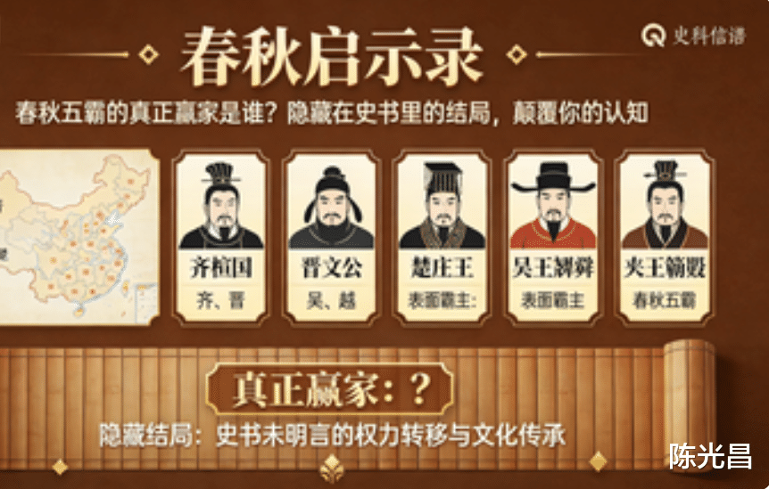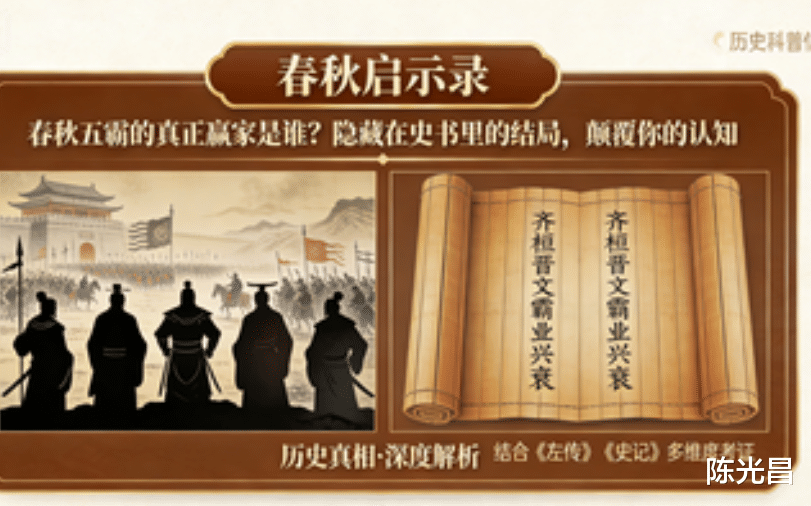 春秋五霸,历来被视作乱世枭雄的代名词。齐桓公尊王攘夷、晋文公退避三舍、楚庄王问鼎中原、秦穆公称霸西戎、越王勾践卧薪尝胆,他们轮番登上历史舞台,演绎着逐鹿天下的豪情与悲壮。但若拨开《左传》《史记》的文字迷雾,追问一句“谁才是真正的赢家”,答案绝非这些转瞬即逝的霸主。在霸权更迭的背后,有一种力量悄然生长,吞噬着诸侯的基业,重塑着天下的格局,最终成为春秋乱世最大的受益者。