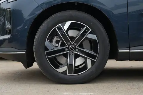 车身侧面的比例很协调,车身尺寸4815/1890/1650mm,轴距2895mm,整体线条平直,车顶线条从B柱后缓缓下滑,既保证了头部空间,又增添了一丝动感。车窗周围的镀铬饰条和车门下方的防擦条,让侧面看起来更有层次感。5门平开门,无框车门+隐藏式门把手,搭配19英寸铝合金轮毂,轮毂的样式简洁大气,整体搭配起来看着很协调,细腻中带着质感及科技感。