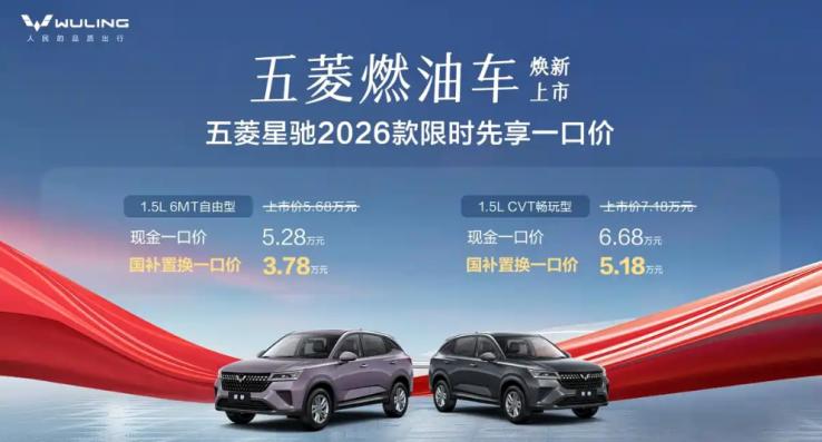 也许有人买车更看重空间表现,也有人买车更关注智能化,但相信没有人买车不看性价比的。倘若有这么一款车,定位小型SUV,一口价下探到3.78万起,这你还坐得住吗?没错,今年车市价格是内卷,但那卷的都是新能源,我们今天聊的这可是实打实的燃油SUV。这里就不卖关子了,它就是上汽通用五菱旗下的2026款星驰。