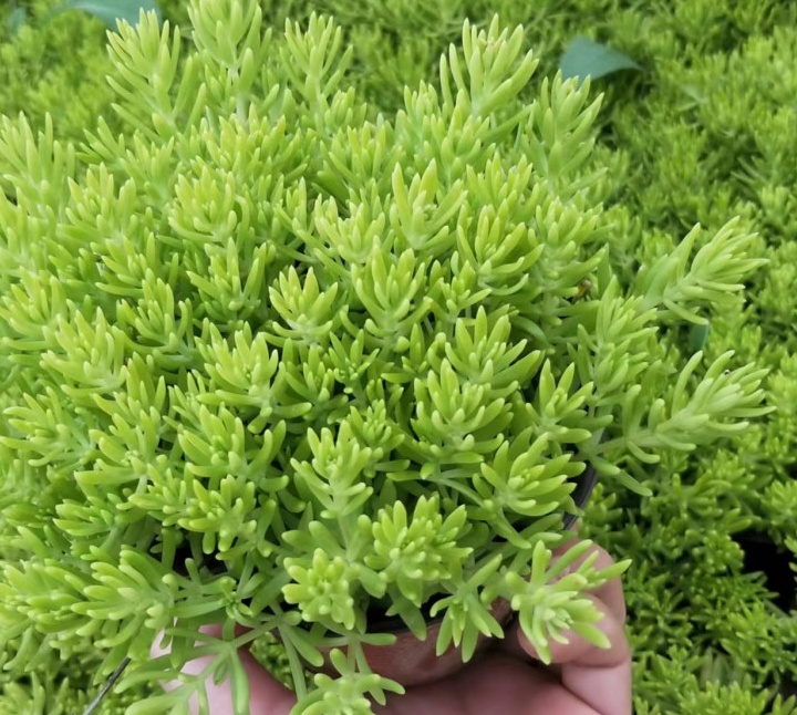 在水土保持方面,佛甲草也发挥了重要的作用。它的根系发达,能够深入土壤中,吸收水分和养分。佛甲草的叶片和茎秆也能够有效地减少水土流失,保护土壤的结构和肥力。科研人员们通过种植佛甲草,在一些水土流失严重的地区取得了显著的效果。