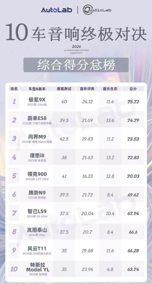 这还没完,极氪9X持续占据汽车之家、懂车帝平台50-100万大型SUV口碑榜及懂车分榜首,并且拿下AutoLab10车音响终极对决综合得分总榜第一......极氪9X“冠军”收割机实锤!