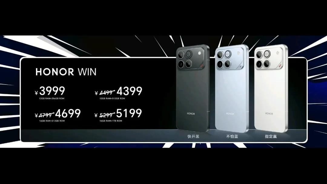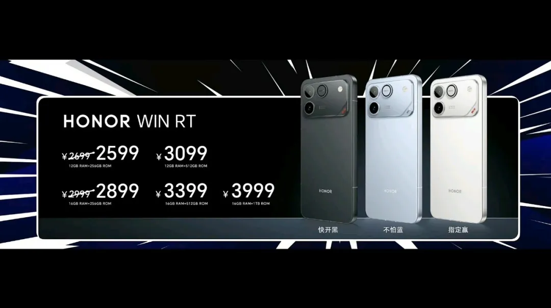 荣耀WIN系列提供两款产品,包括荣耀WINRT,以及荣耀WIN,首销价分别为2599元和3999元,地补后分别为2339元和3599元,荣耀WIN系列主打电竞游戏体验,两款手机都搭载了骁龙8系旗舰芯片,性能十分有保障,续航更是诱人了,全球首发10000mAH超大电池,全系配备185Hz超高刷新率,全系配备东风涡轮散热系统,妥妥的新一代卷王。