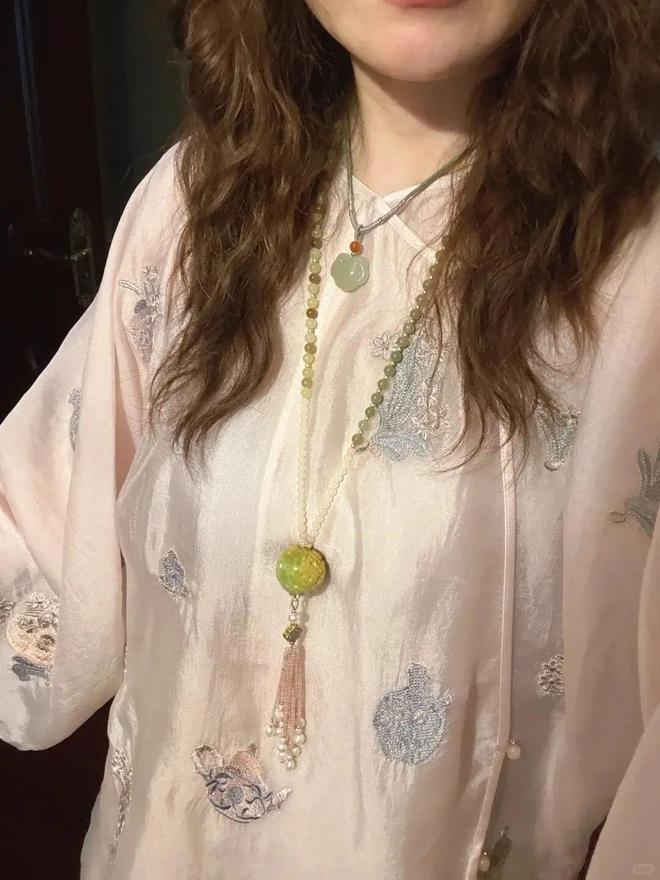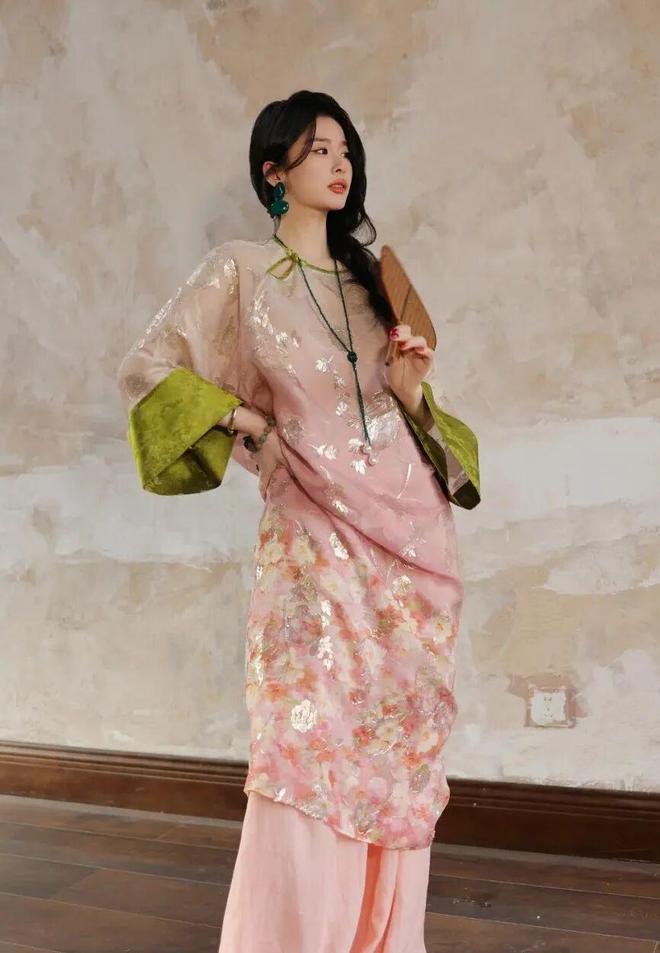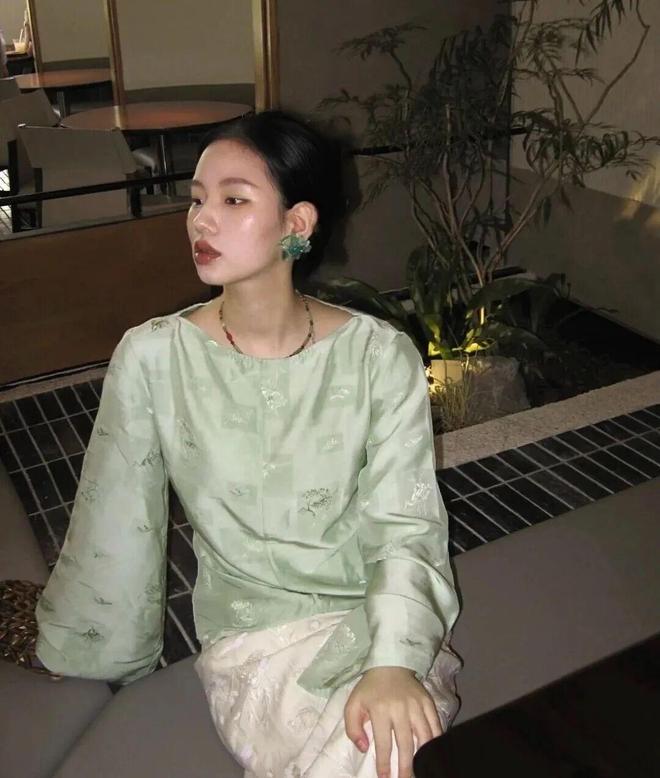 青绿色新中式改良罩衫,自带东方传统色谱里的温润雅致。天丝面料泛着细腻柔和的光泽,搭配克制含蓄的纹样,既有中式风骨,又足够松弛日常。