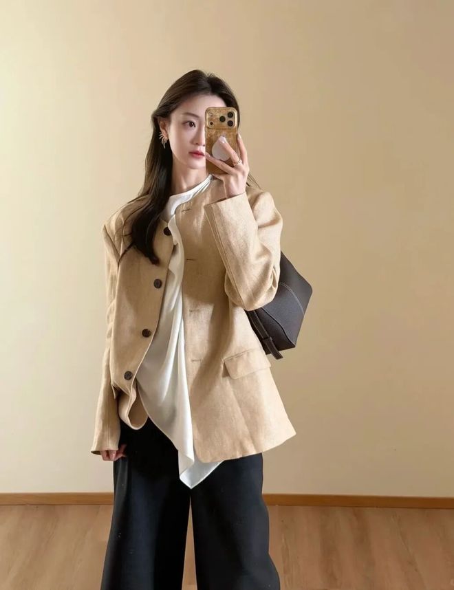 穿搭3:藕荷橙上衣+亚麻色阔腿裤