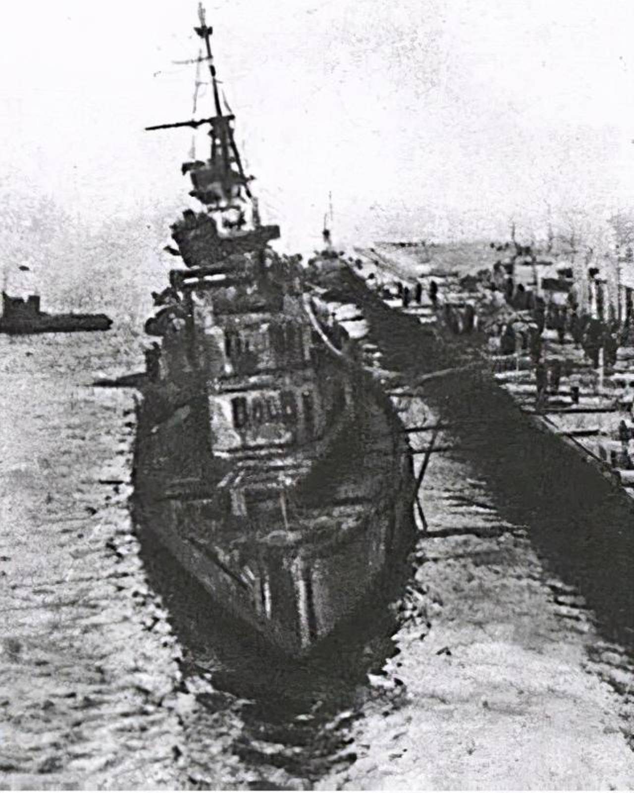 1951年5月16日,“重庆号”被整体打捞出水,拖进了大连造船厂,但因维修成本巨大,最终决定放弃修复。