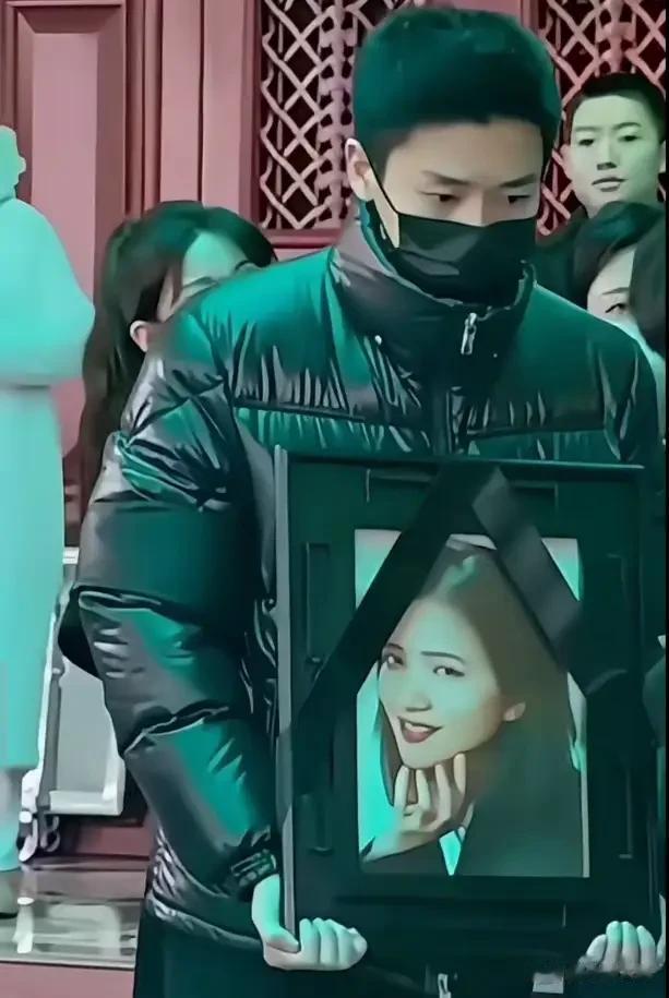 从曝光的照片看,何晴的儿子手捧其遗像 眉宇间满是悲伤。