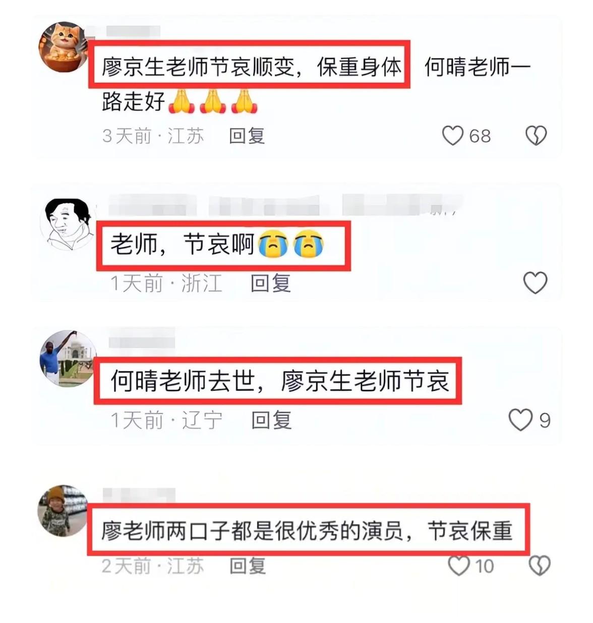 何晴离世后,网友纷纷跑到廖京生社交账号下留言,希望他能节哀 ,评论区一度沦陷。