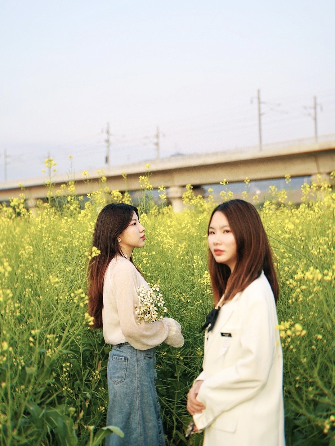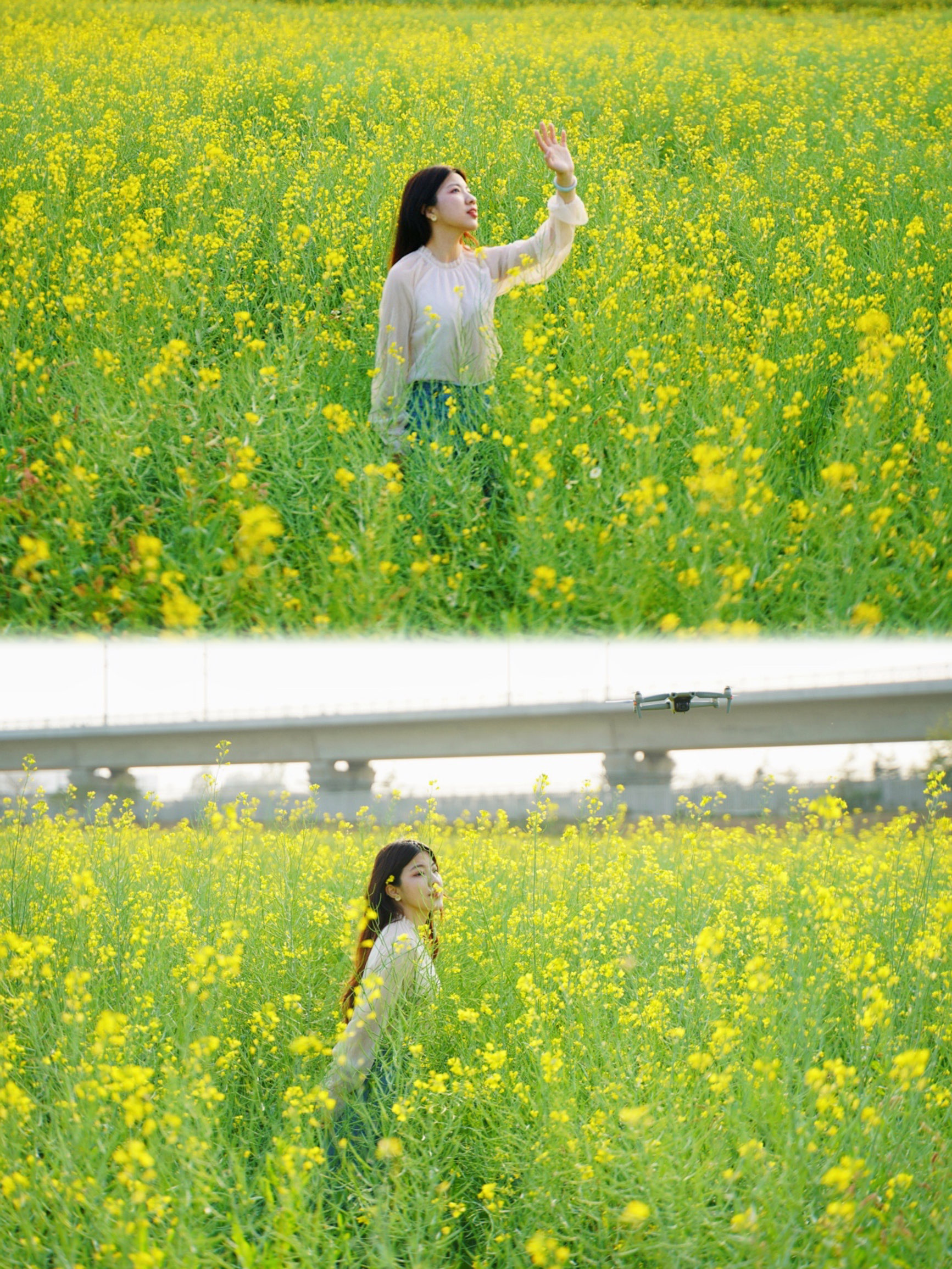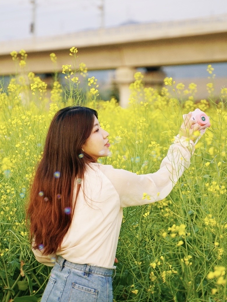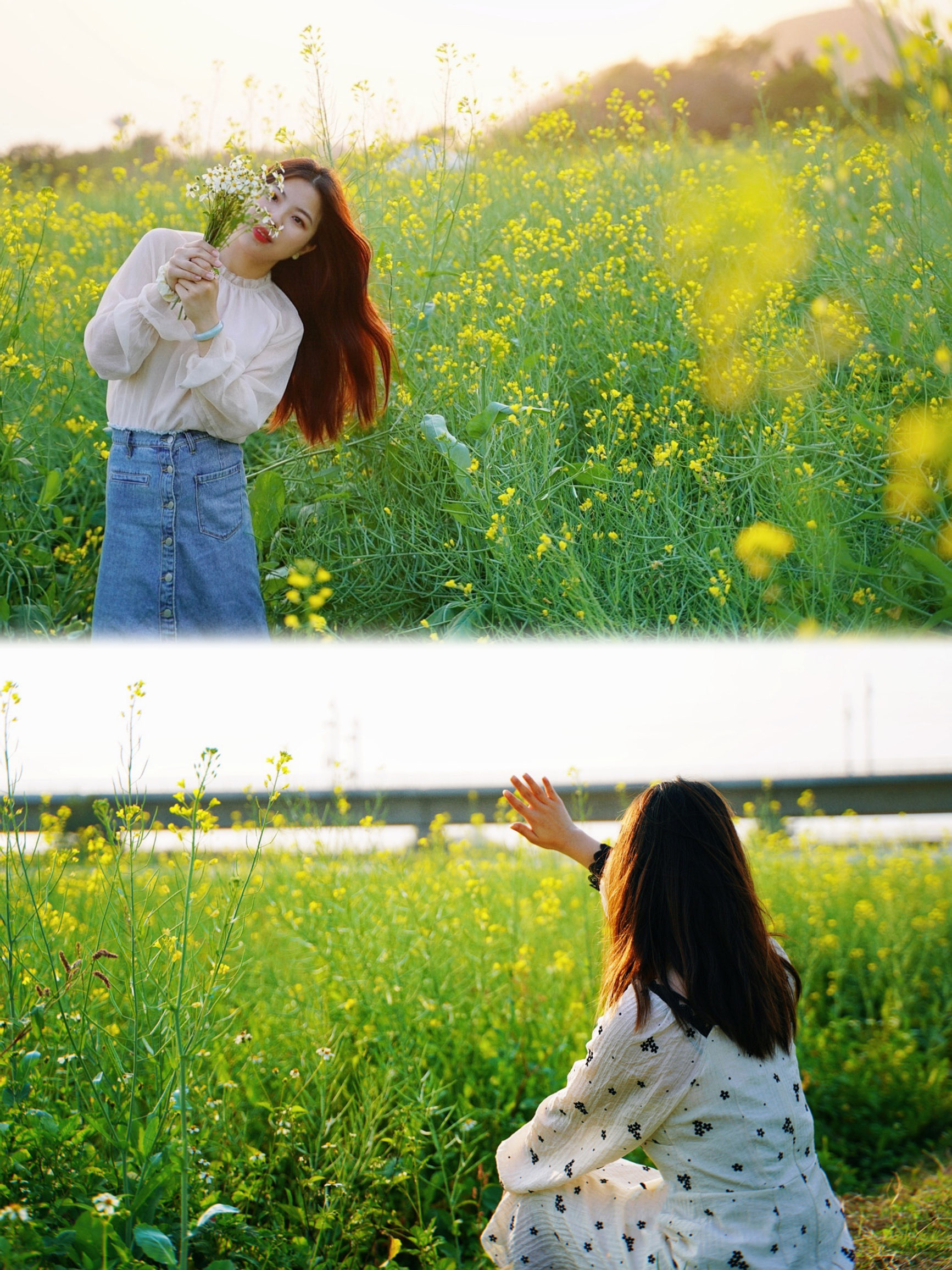 #露营徒步野快乐 - 油菜花已开趁阳光明媚 赴一场春天的浪漫~🖼 - 初春限定油菜花 開往春天的列車🚄 - 下午4点后阳光会比较柔和 能给人日式小清新的画面感 如同春日采蜜的少女 描绘着晴朗的春景 散发着青春的气息 💛💛💛💛💛💛💛💛💛💛💛💛💛💛💛 - 「深圳光明小镇·欢乐田园」 🎫门票:10/人 🕙时间:9:30-18:00(17:30停止入园) 🏠预约:“光明欢乐田园”公众号提前预约 🚌方式:自驾或者地铁到达光明大街站后坐滴滴 👒道具:泡泡机、帽子、花 👗穿搭:建议白色等浅色搭配,比较青春日系 🎨滤镜:美图秀秀“春日限定”的“清澈”滤镜(真的超级推荐这个滤镜!超级适合春天!很温柔很美!)然后可以根据图片的亮度来增减对比度高光等 📷拍照建议: 1⃣️低机位可以用花当作前景,拍摄人物在花后面(虚化前景)特写写真 2⃣️高机位在高处拍人物,很容易形成花海 3⃣️俯拍人物坐在油菜花田 4⃣️最茂密的油菜花田在高架桥底下,人少易出片。还时不时有高铁疾驰而过~ #油菜花田#深圳旅行#轻奢旅行#保姆级旅拍攻略
