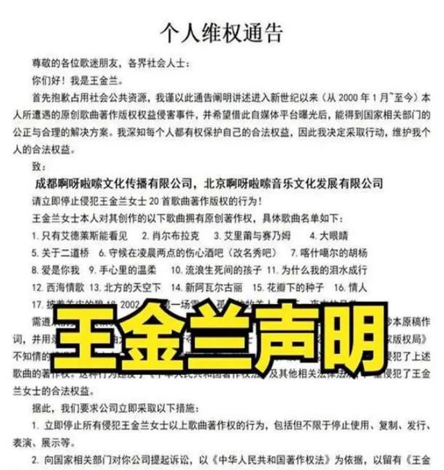 所以网络上不少网友对王金兰的动机表示怀疑,认为她可能是为了蹭刀郎的热度,然而王金兰并没有因此退缩,反而继续通过各种渠道进行维权。