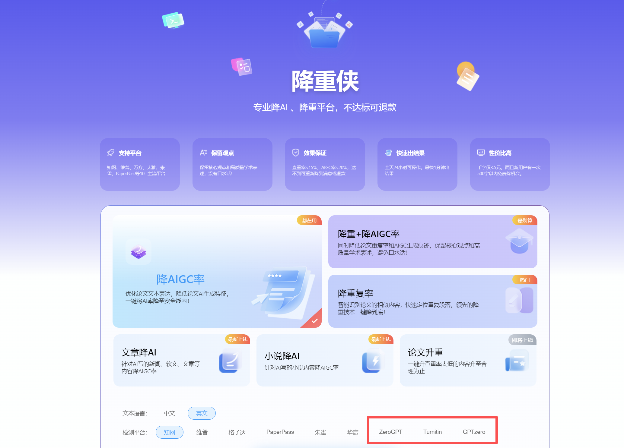 很多人问针对ZeroGPT、GPTZero、Turnitin 等检测平台降英文AI率哪个工具最好,首先给大家介绍下他们,这都是目前全球认可度最高的英文AI文本检测工具!