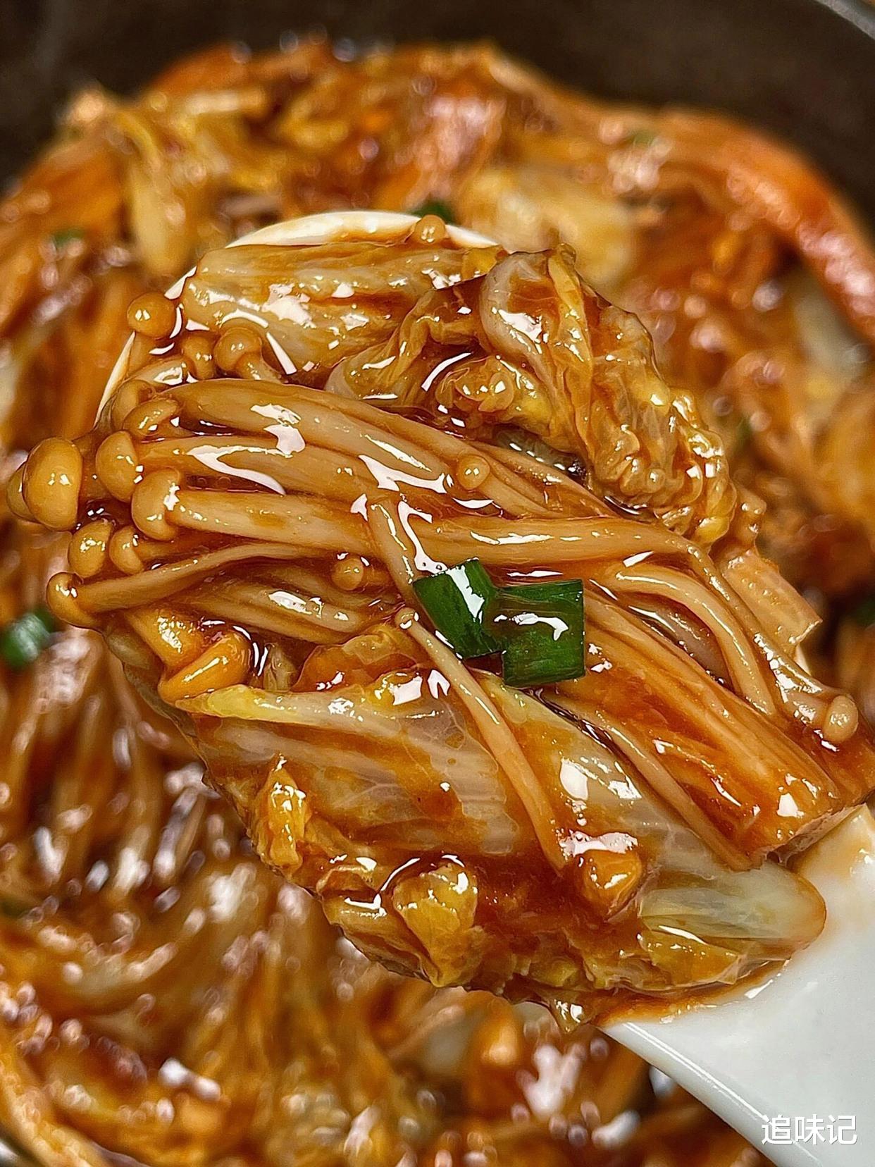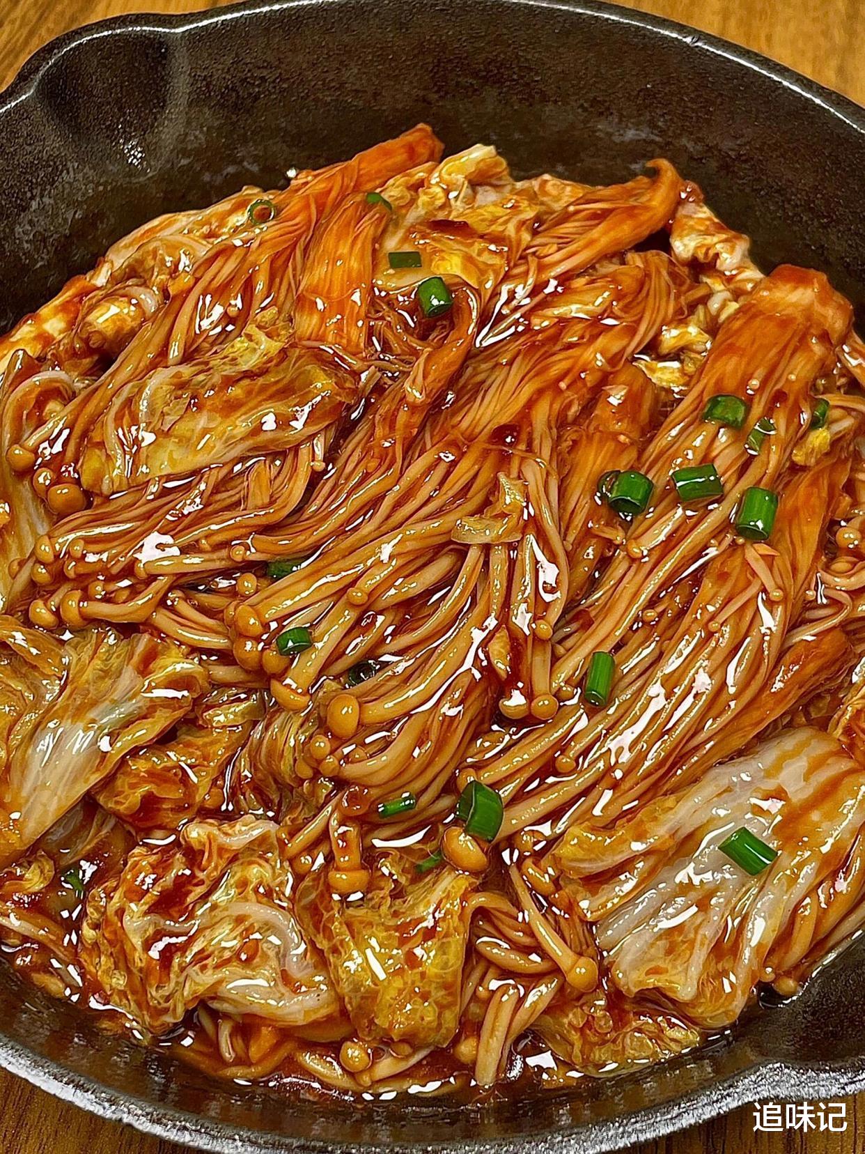 金针菇娃娃菜金针菇鲜嫩爽滑,娃娃菜清甜多汁,酱汁浓郁咸香,蒜香扑鼻。两者搭配,入口爽脆,酱汁包裹着每一根菜叶,越吃越香。