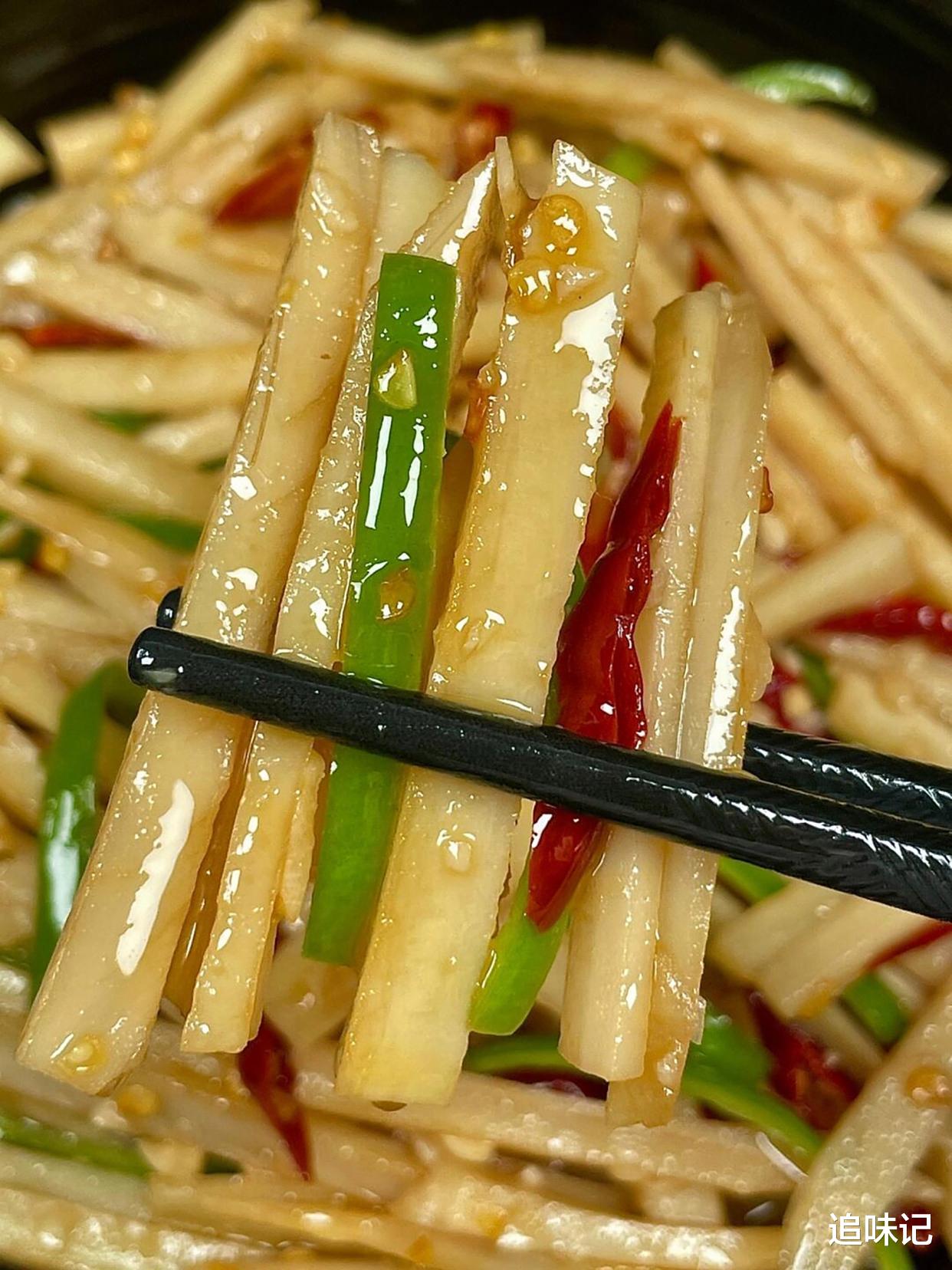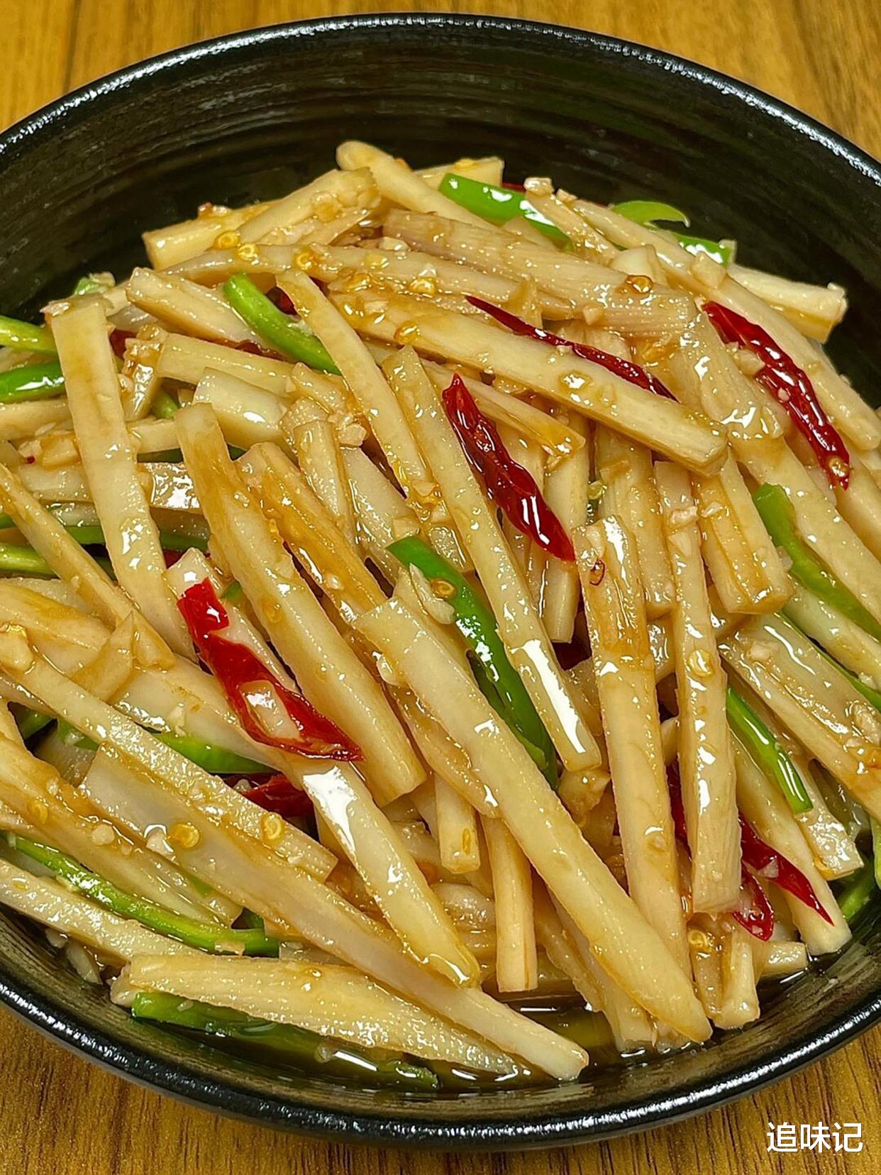 藕丝脆嫩爽口,酸辣开胃。干辣椒的香辣与醋的酸爽完美融合,青椒丝增添了清新口感,每一口都让人食欲大增。