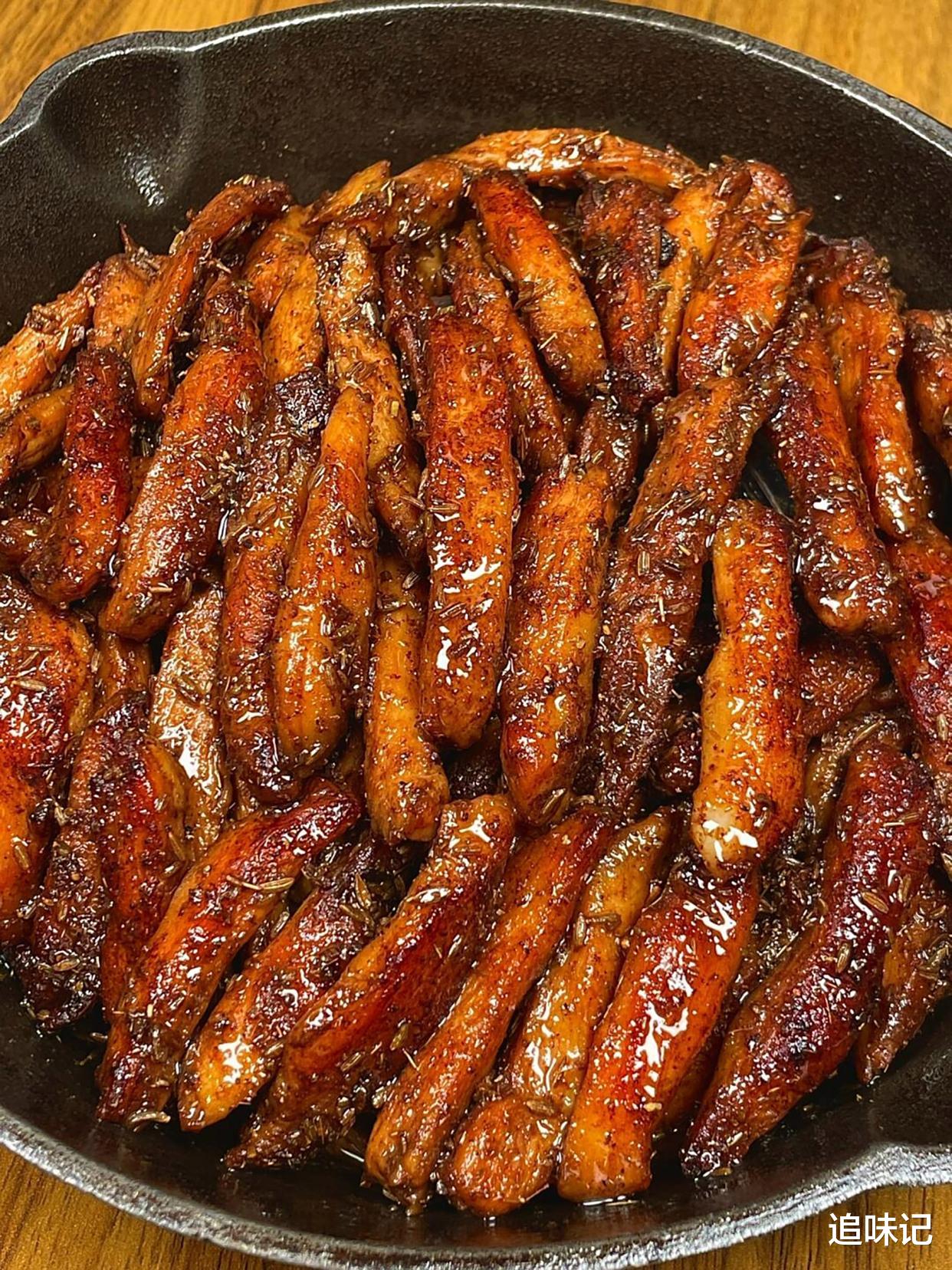 鸡胸肉外焦里嫩,孜然香气四溢。煎至金黄的鸡肉带着一丝焦香,孜然的味道浓郁而不冲,每一口都让人回味无穷。