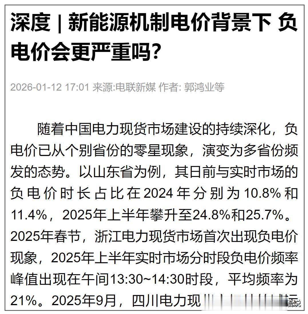 现在越来越多新能源电力进入市场交易,这种因天气导致的供应波动,会直接反映在电价上。国家能源局也说了,等新能源全面入市,负电价出现的次数还会增多。